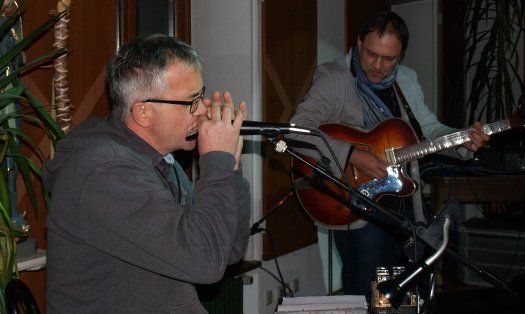 Mit „Easy Roider“ bestehend aus Robert Hobmeier und Stefan Amannsberger kam der „bayrische“ Blues in den Pfarrsaal. Gitarre, Mundharmonika und bayrischen Gesang, mehr brauchten sie nicht um ihre ehrliche, manchmal auch hinterfotzige Musik zu präsentieren und das Publikum zu begeistern.
