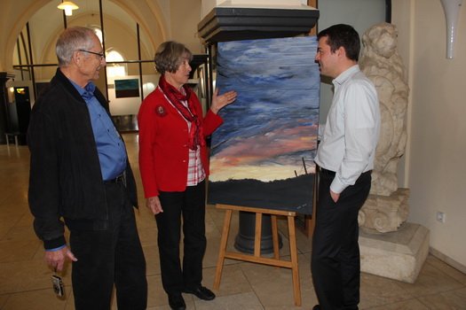 Eröffnung der Ausstellung „Von Engeln und Landschaften“ im Pfaffenhofener Rathaus mit (von links) Heinz und Kiki Mittelstaedt sowie Bürgermeister Thomas Herker. Foto: E. Steinbüchler