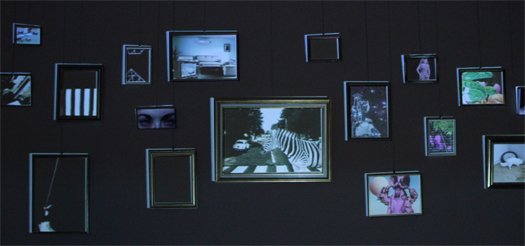 Wem eine herkömmliche, statische Ausstellung von Kunstobjekten jedweder Art zu fad ist, der sollte sich noch bis einschließlich 3. November ins Haus der Begegnung begeben. Drei Projektoren stehen dort an verschiedenen Stellen des Ausstellungsraums, so dass sie die mit leeren Bilderrahmen versehenen Wände mit wechselnden Inhalten versehen. Da läuft einmal ein Video ab, in einen anderen Rahmen projiziert der Künstler Collagen, zusammengesetzt aus teilweise bekannten Motiven, die er aber mittels eigener Ergänzungen zu seinem eigenen Motiv macht. So laufen auf dem bekannten Abbey Road Zebrastreifen nicht John, Paul, George und Ringo, sondern es steht dort ein richtiges Zebra; aus dem Hintergrund kommt gefährlich ein Löwe auf Zebra und Betrachter zugesprungen, der immer größer wird, aber wieder verschwindet, bevor es ernst geworden ist.