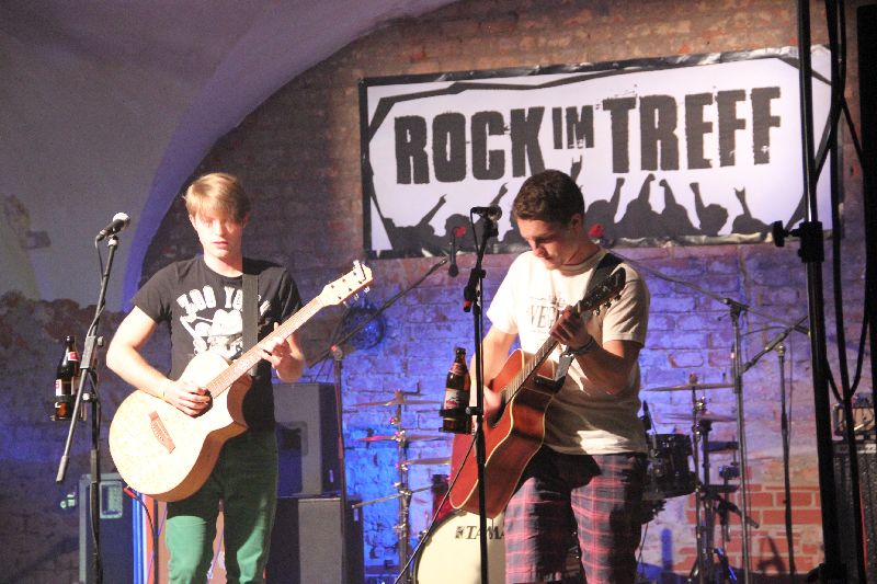 Als Einstieg gab es beim diesjährigen "Rock im Treff" vor dem Auftritt von Django S bayerische Lieder mit durchaus hintergründigen und kritischen Texten von "Zwoa Bier", zwei Gitarristen aus München, die beim Publikum tollen Anklang fanden mit ihren teilweise witzigen, dann wieder zum Nachdenken anregenden Geschichten hinter den Liedern. "Mia spuin heit scho den Song für morgen früh - nämlich den 'Kater-Song'" kündigten sie eines ihrer Lieder an.
