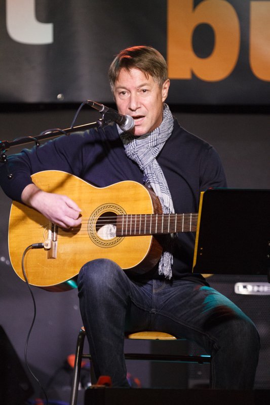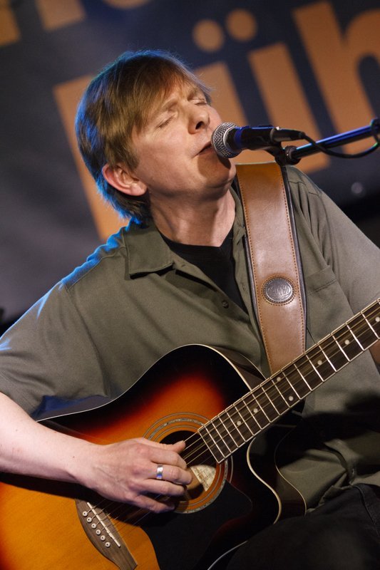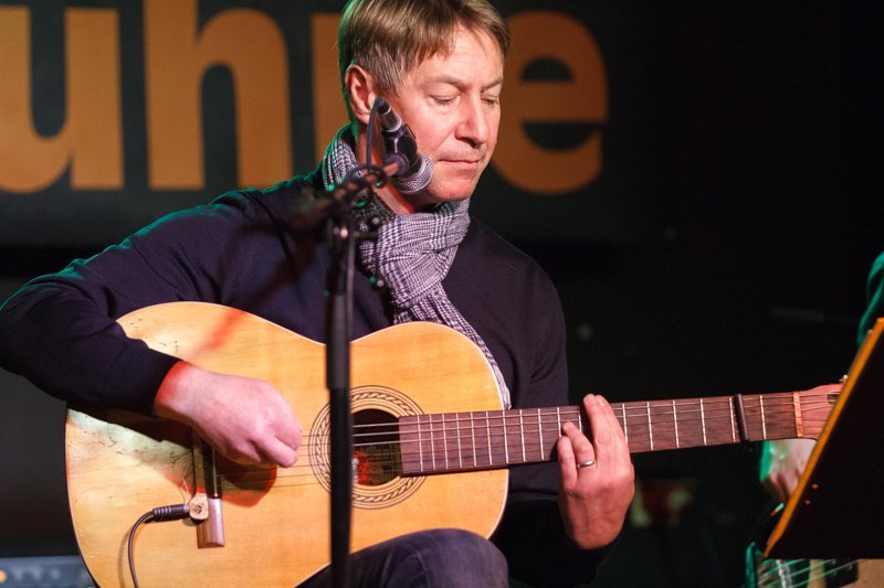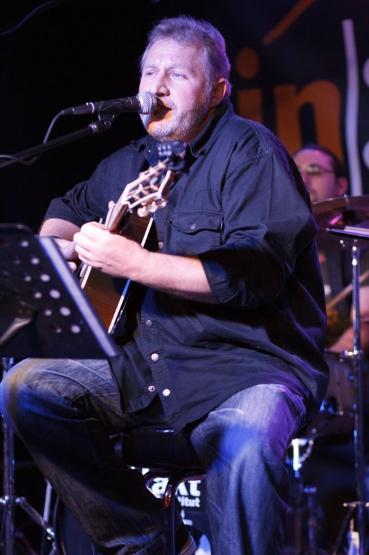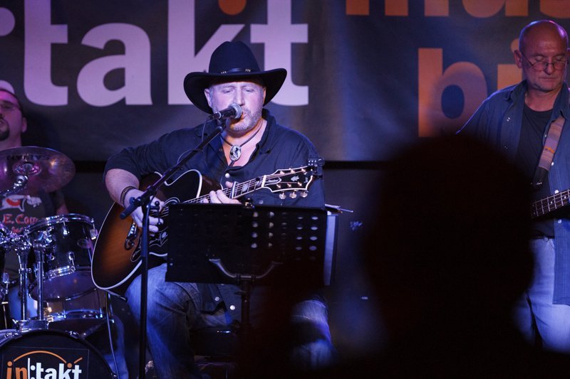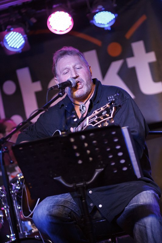 Fernab der bayerischen Mundart spielte zum Abschluss des Abends Singer-Songwriter Ralf Dee. Dabei wurde er tatkräftig von Drummer Christian Ertl und Intakt-Musiklehrer Tom Rothbucher am Bass. Dee spricht mit seinen Songs vor allem weltkritische Themen an – „Dinge, die auf dieser Welt verkehrt laufen“ wie Menschenrechtsverletzungen und dergleichen. „Jeder sollte sich dafür einsetzen, dass sich diese Dinge irgendwann ändern müssen“, erklärt er. Dass seine Liedtexte Stellen wie „As long as so many things go wrong I cannot close my eyes too long“ beinhalten, scheint nahe gelegen. Auch weist er die Politik in ihre Schranken. Politiker seien nicht besser als andere Menschen, nein “die wichtigsten Menschen sind Maurer, Krankenschwestern […]”. Worte zum nachdenken und schlussfolgern – zum Abschluss des stimmigen Abends.