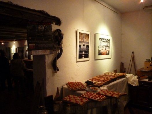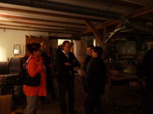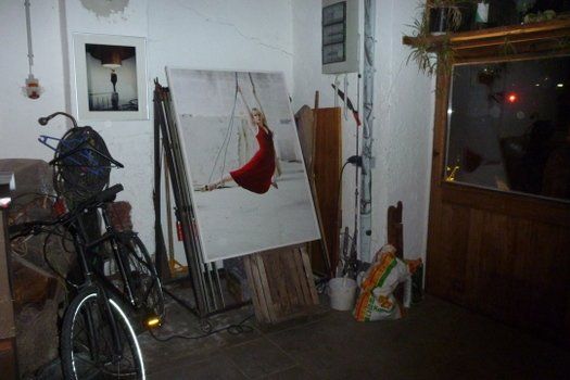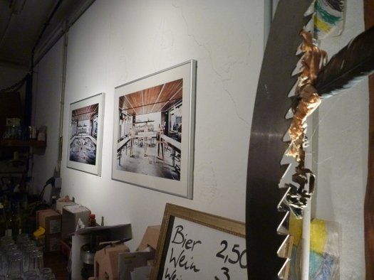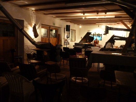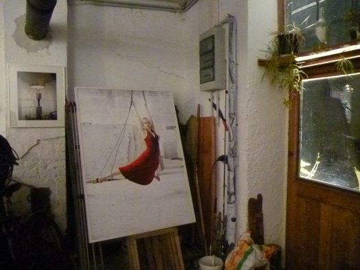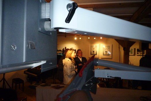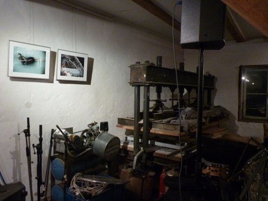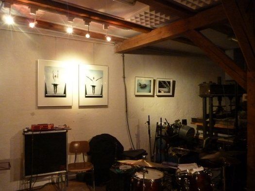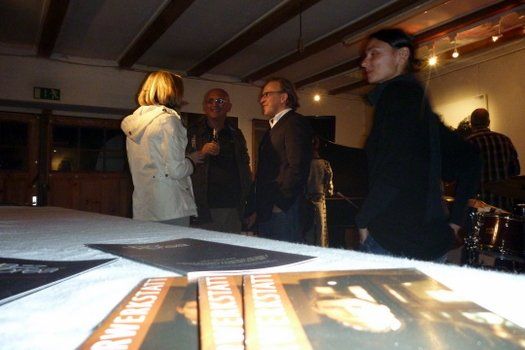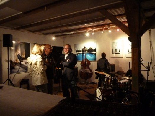 Vor dem Jazz stand die Vernissage des Eichstätter Fotographen Hubert P. Klotzeck samt Häppchen und Sekt. Meist großformatige Fotos hatte der Fotograf mitgebracht, einzelne Frauengestalten in Tänzerpose beobachten nun 4 Wochen lang Wagge Singer bei seiner Arbeit in der Schreinerwerkstatt. Eine Bilderserie die in ungewöhnlicher Umgebung mit ungewöhnlichen Modellen erstellt wurde, in der noch ungewöhnlicheren Situation der Künstlerwerkstatt.