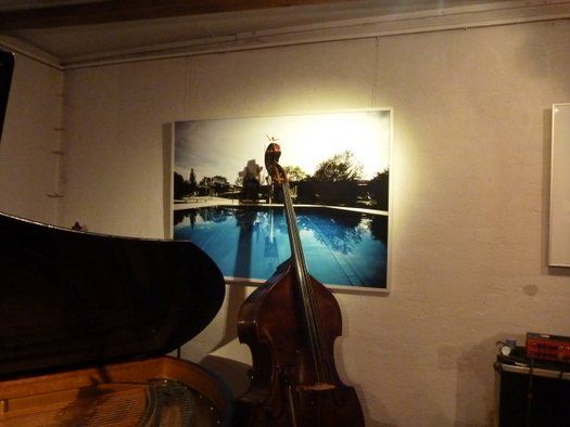 Der Autodidakt am Auslöser würde gerne, falls das möglich wäre, im nächsten Leben Tänzer werden, sagt er, doch wer würde dann fotografieren? Seine Galerie BILDFLÄCHE in Eichstätt bräuchte einen neuen Betreiber und seine feinen Arbeiten würden uns vorenthalten. Wünsche und Konjunktiv sind auch so sein Thema, eine fast surreale Welt finden wir, in der die Protagonisten fast trotzig ihr ganz innerliches Leben, im Bild eingefroren, zeigen. Viele Motive sind in den Steinbrüchen des Eichstätter Jura entstanden, warum sollte es immer weit, weit weg sein, die nähere Umgebung liefert, weil bekannt, den besten Hintergrund. Hängen die Fotos an einem anderen Ort, ist die Weite zum Entstehungsort auch gegeben. Eine sehenswerte Bilderschau, die sich fast nahtlos in die besondere Stimmung einfügt, die die Jazzwerkstatt verbreitet.
