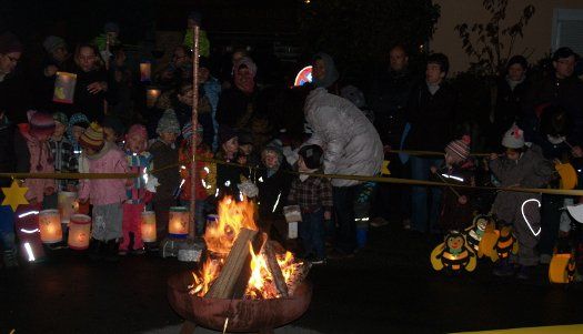 Der Korbinian-Kindergarten begann seine Veranstaltung im Rondell vor dem Haus. Beim Johannes-Kindergarten trafen sich Kinder und Eltern im Garten zu einem großen Lichtermeer ein. Anschließend zogen alle Kinder, Eltern und Betreuer mit ihren selbstgebastelten Laternen aus zwei Richtungen zur Hopfenhalle, wo sie sich um ein großes Feuer versammelten und lauthals ihre Lieder sangen. Das Lichtermeer mit den vielen Laternen ist für die Kleinen immer etwas ganz Besonderes. Mit leuchtenden Augen standen sie vor dem großen Feuer und hielten ihre eigenen Laternen fest umklammert. Damit auch ja nicht die Kerze ausgeht.