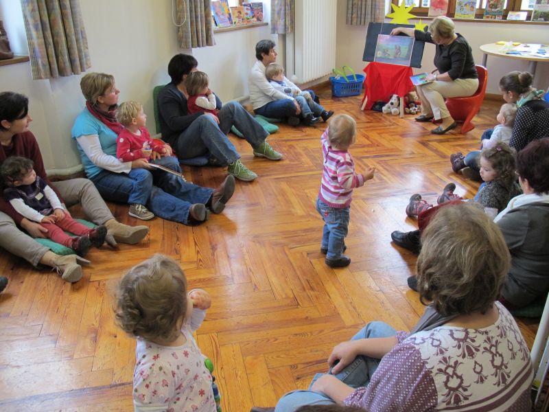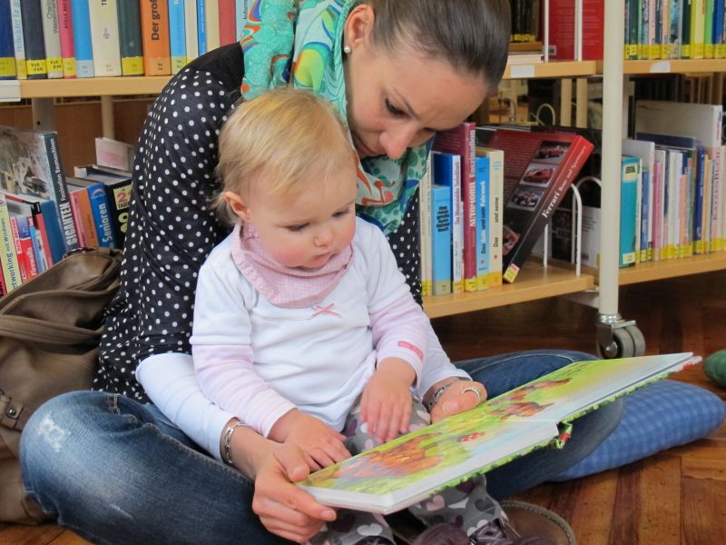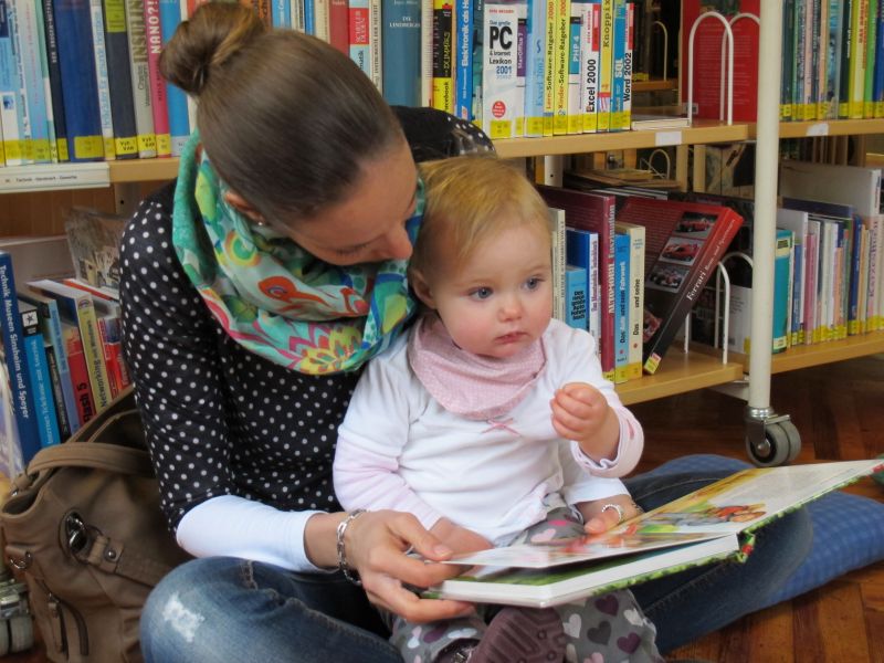 Begeisterte Krabbelkinder in der Stadtbibliothek