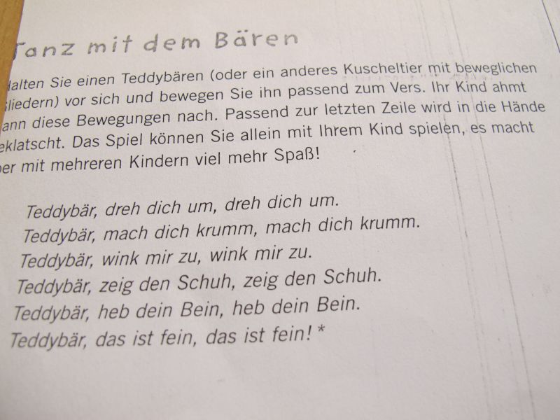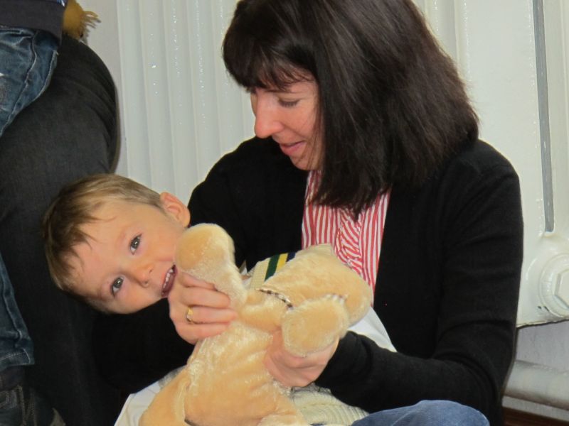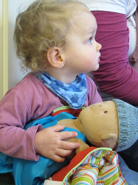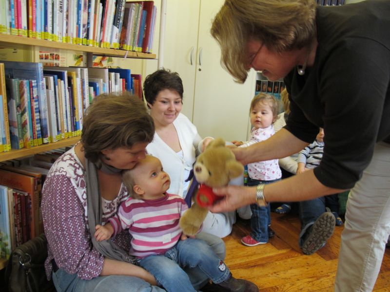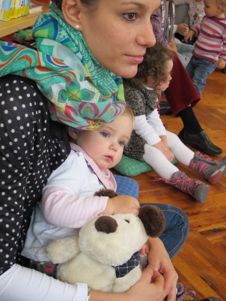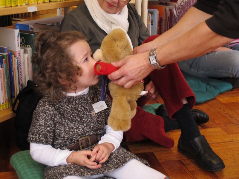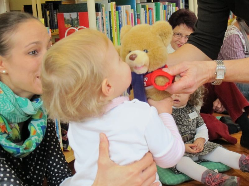 Die Geschichte gefiel den kleinen Zuhörern so gut, dass alle mucksmäuschenstill zuhörten und weil alle so aufmerksam bei der Sache waren, wurde zum Schluss der Stunde noch ein lustiges Teddybärlied zum Mitmachen gesungen.