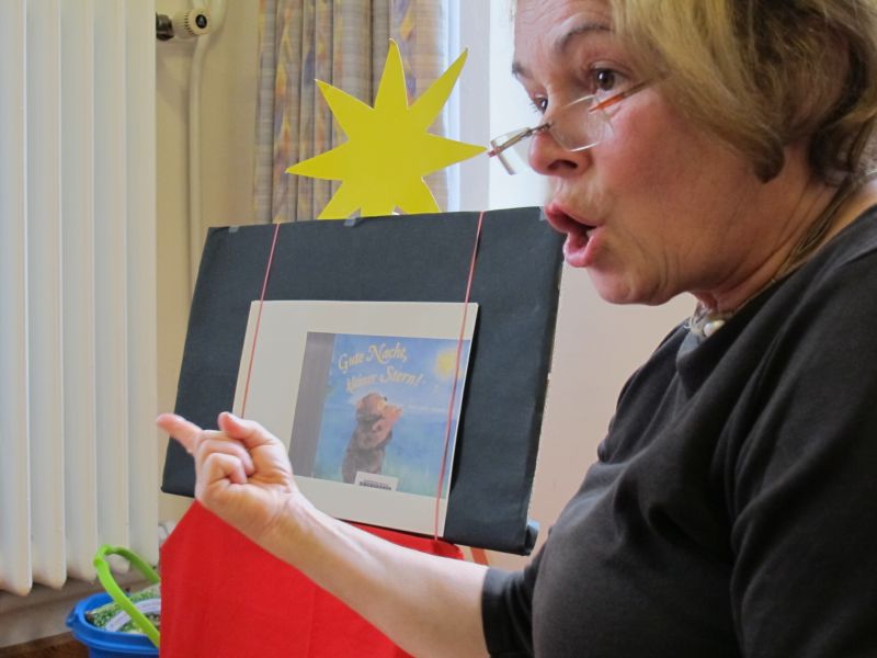 In der Stadtbibliothek durften sich die Krabbelkinder dieses mal eine traumhafte Geschichte von einem kleinen Stern anhören, der heute nicht so hell strahlt wie sonst.