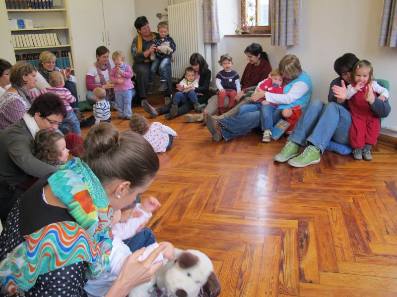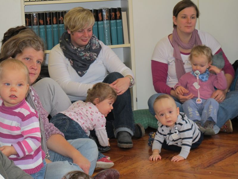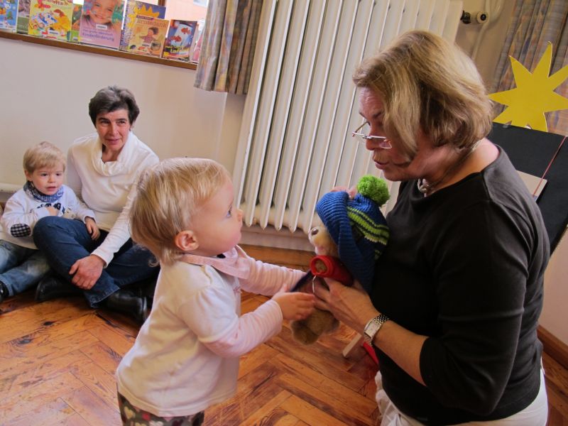Renate Fuchs und Brigitte Berg freuten sich wieder sehr über die vielen kleinen Zuhörer, die in Begleitung von ihrer Mama oder ihrer Oma erschienen.