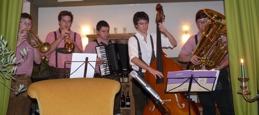 Musikalisch begleitet wurde der Abend von einer Band, die die Lesung gleich noch zur Namensfindung heranzogen. Denn da sich die fünf Musiker, die eigentlich schon seit drei Jahren miteinander auftreten, nicht auf einen Namen einigen konnten, wurde kurzerhand ein Gewinnspiel ausgerufen. So machte ein Gast auch den treffenden Vorschlag zum lateinischen „mihi placet“ –übersetzt: „Das gefällt mir“. Mit Rock‘n Roll und Volksmusik sorgten die fünf Jungs von „mihi placet“ nach jedem Leseabschnitt dabei wieder für abwechslungsreiche Unterhaltung der Zuhörer.