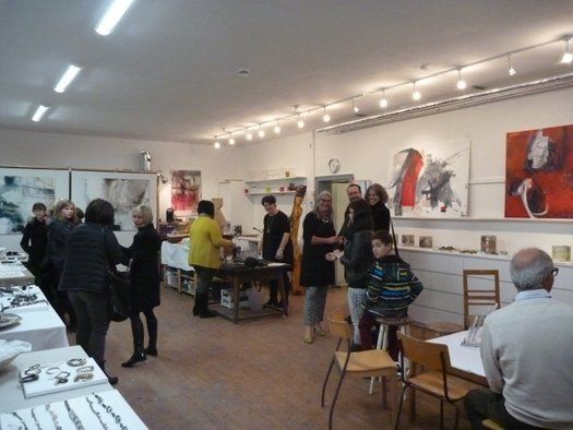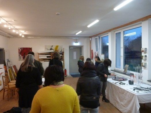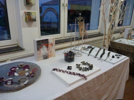 Großformatiges auf Leinwand, wunderbarer Schmuck, Experimente der skulpturalen Art frei nach Byeus „Jeder Mensch ist ein Künstler!“ und vieles Bewundernswerte mehr. Die Besucher durften sogar die Ausstellung umhängen, Anfassen erlaubt. Weitere „Lehrer“ in der Kunstschule sind Monika Wiemers und Christa Radlmeier, die mit ihrer umfangreichen Erfahrung dazu beitragen, die Vielfalt des Angebotes zu erweitern.