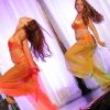 So schillernd diese uns doch meist unbekannte Welt ist, so unterschiedlich waren auch die gezeigten Tänze. Unter anderem konnte ein schöner nostalgischer Schleiertanz im klassischen Stil bewundert werden. Doch nicht nur dieser sehr getragene Stil, der auch bis weit ins Mittelalter zurückreicht, fand Einklang in die Show. Im Gegenteil, feurig und temperamentvoll ließen Sybille und Monika, zwei langjährige Schülerinnen, die Schleier durch die Luft fliegen und rissen das Publikum mit ihrer Darbietung regelrecht mit. Alle Tänzerinnen wurden am Ende ihrer Darbietung mit Applaus überschüttet. Neben den vielen eigenen Schülern - Nadine Kleina betonte in diesem Zuge, dass es eine Studioshow war - standen aber auch vier Profis auf der Bühne.