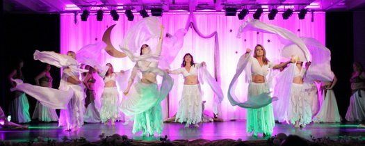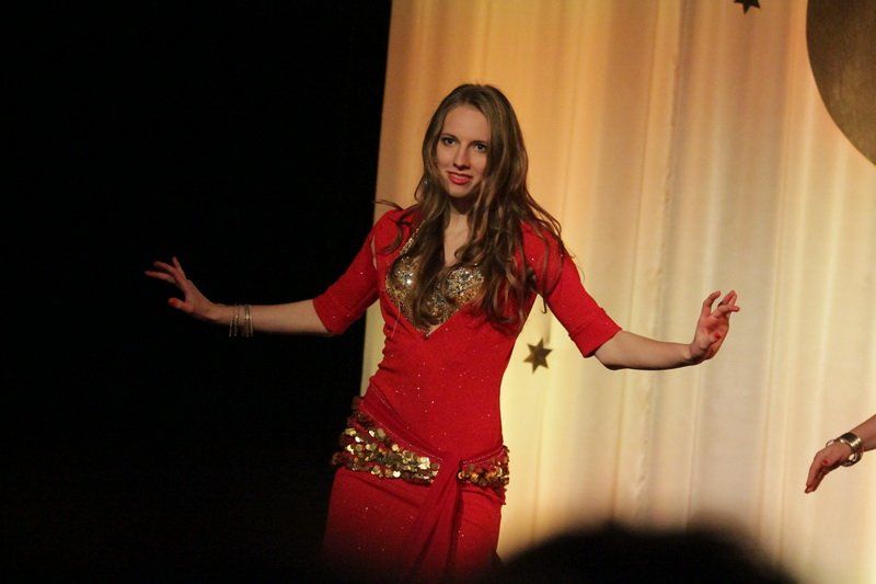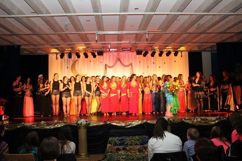 „Es freut mich, dass heute so viele gekommen sind, um unsere Show zu sehen“, so Nadine Kleina, die das Publikum durch den bunten, farbenfrohen Abend führte. Dass nun die arabische Welt mehr zu bieten hat, als die eher negativ geprägten Nachrichten, die die Medienlandschaft dominieren, das wurde schon bei der Ouvertüre deutlich. „Es geht um den Zauber, die Mystik und das Temperament von 1000 und einer Nacht“, so die Leiterin des Tanzstudios. Dabei zeigten die rund 100 Tänzerinnen aber nicht nur klassische Bauch- und Schleiertänze, sondern schlugen gekonnte die Brücke von der märchenhaften Vergangenheit in die ebenso farbenfrohe Moderne.