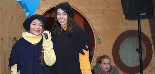 Zum Einzug sangen die Wichtel ihr fröhliches Wichtellied und freuten sich beim Interview mit Fabian Stahl auf die Wochen bis Weihnachten.