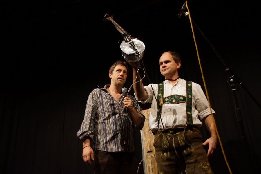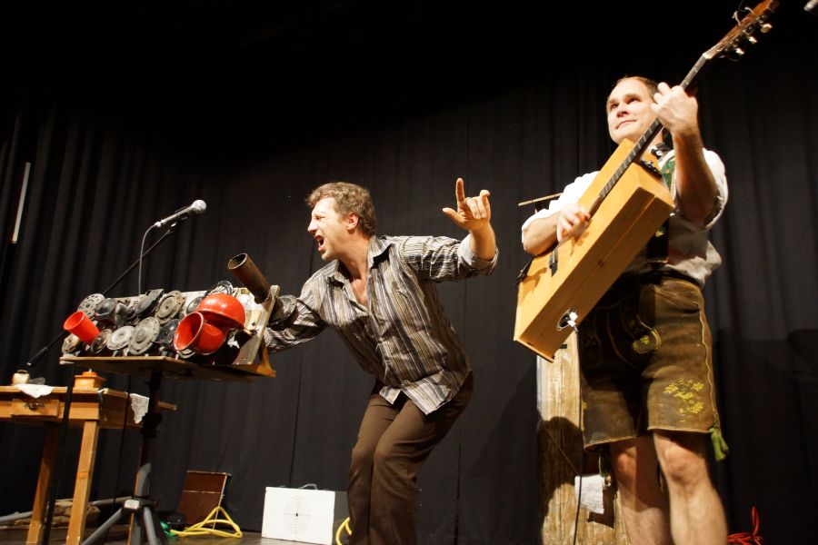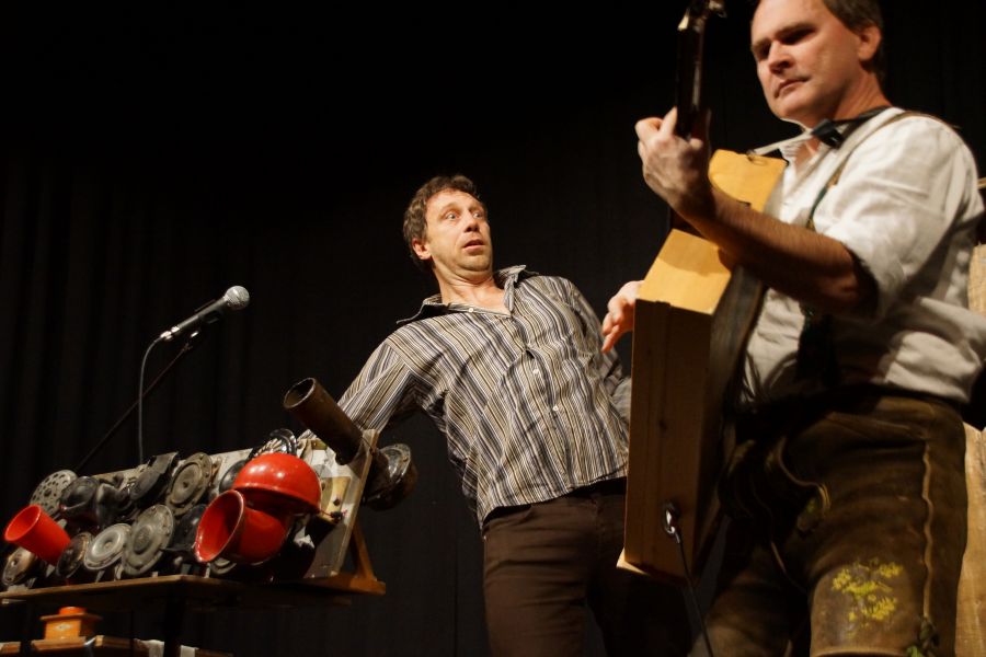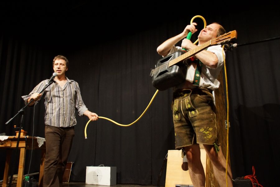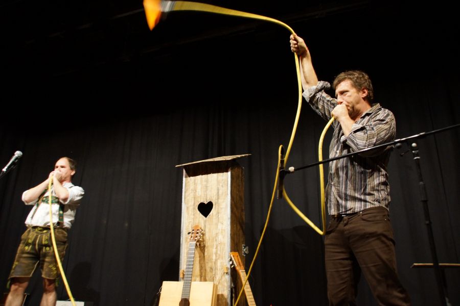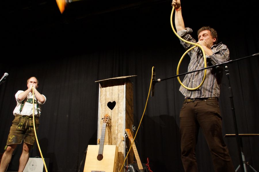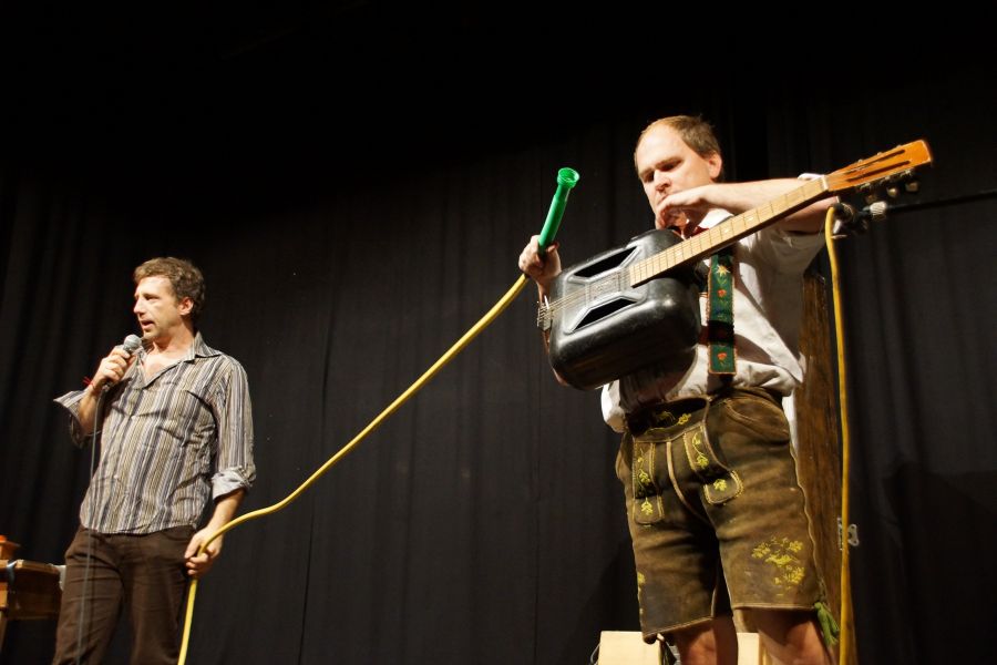 Egal ob Luftpumpe oder Kühlerschläuche, ob verbeulter Teekessel oder alte Benzinkanister, es war unglaublich, was für Töne die beiden Künstler aus diesen äußerst ungewöhnlichen Instrumenten herausholten.