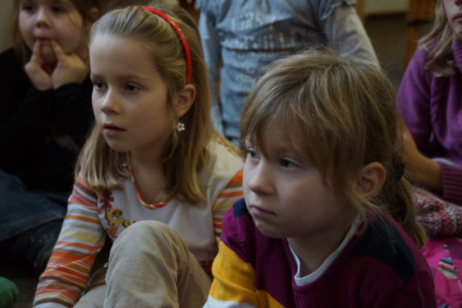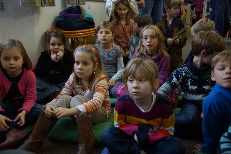 Mit gespitzten Ohren lauschten die 18 Mädchen und Buben dem spannenden Buch über die kleinen James Bond Fans Pelle, Max und Bella. Genau wie bei uns ist bei den dreien Dezember und an jeder Ecke ihrer Heimatstadt Berlin stehen Weihnachtsmänner.