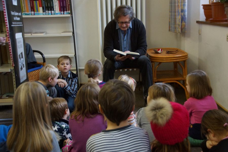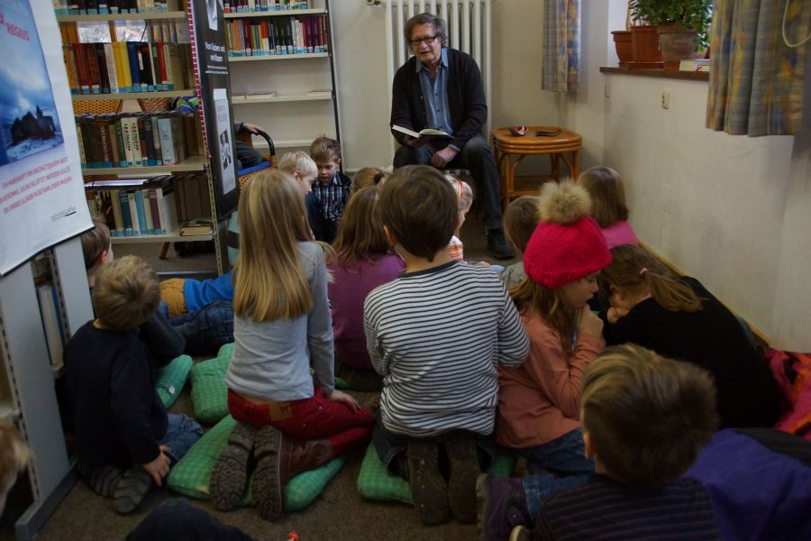 Die Vorlesestunde für Grundschulkinder in der Stadtbibliothek war auch an diesem Donnerstag wieder sehr gut besucht. Erich Schaller begeisterte mit der Detektivgeschichte „Codewort 007: Alarm im Advent“.