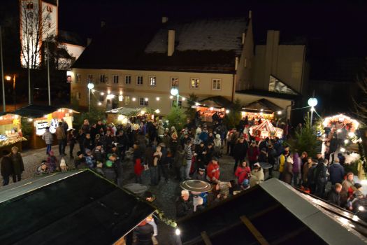 Der Markt wurde durch das Christkind eröffnet und die Adventsbläser der Blaskapelle spielten aus dem Fenster des Gemeinderatssaals heraus weihnachtliche Weisen. Außerdem spielten während der geöffneten Hobby- und Kunstaustellung im Rathaus das Akkordeon-Duo sowie das Irish Folk Ensemble der realtime-Musikschule.