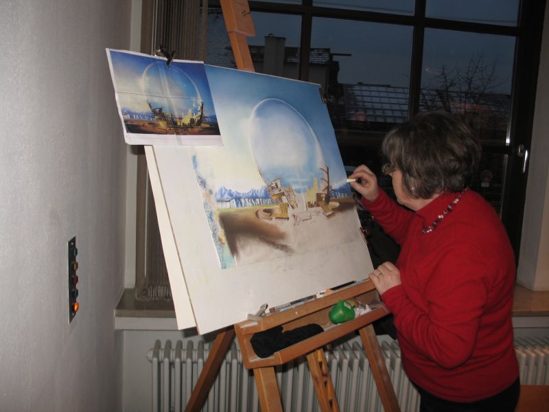 Mit Staffelei und Pastellkreide ließ sie ein filigranes Kunstwerk entstehen.