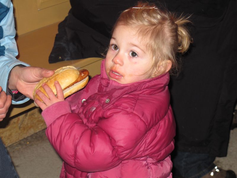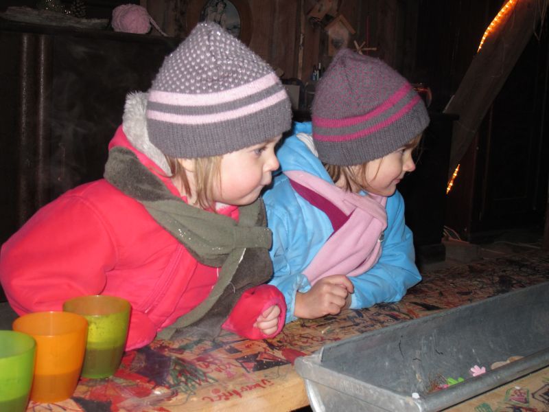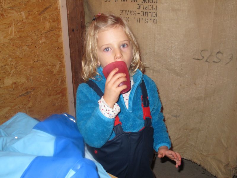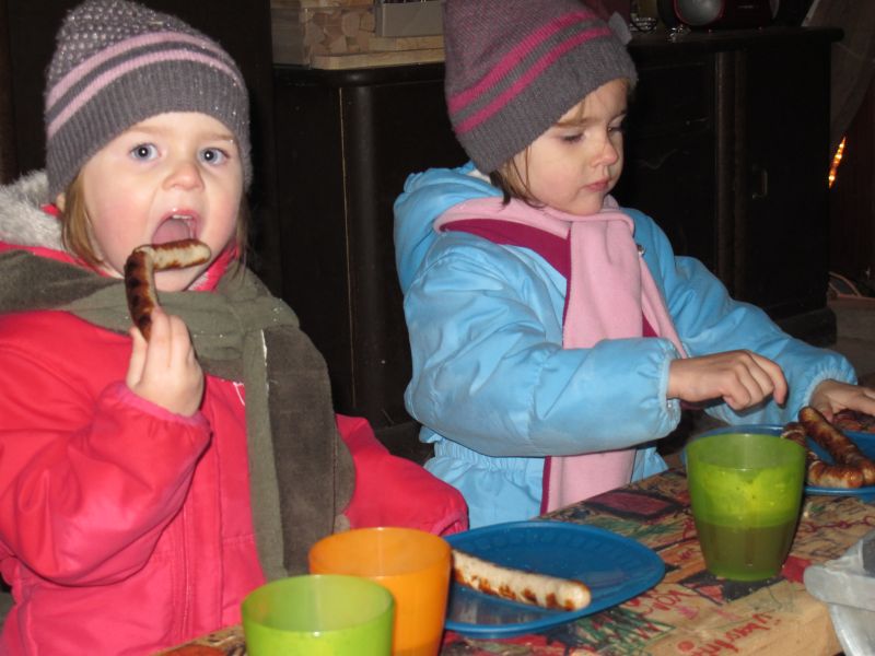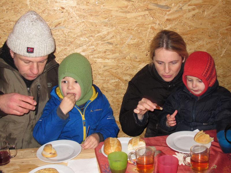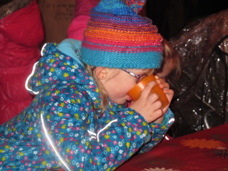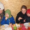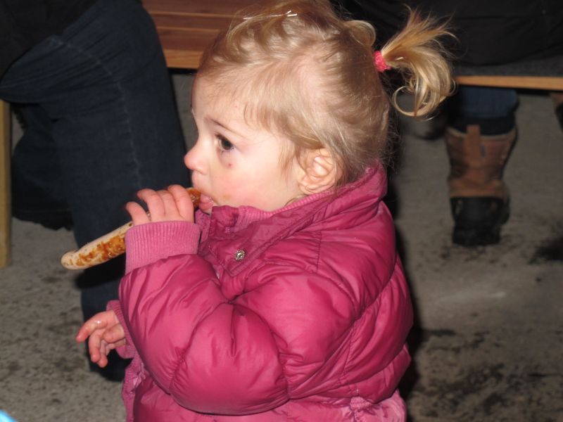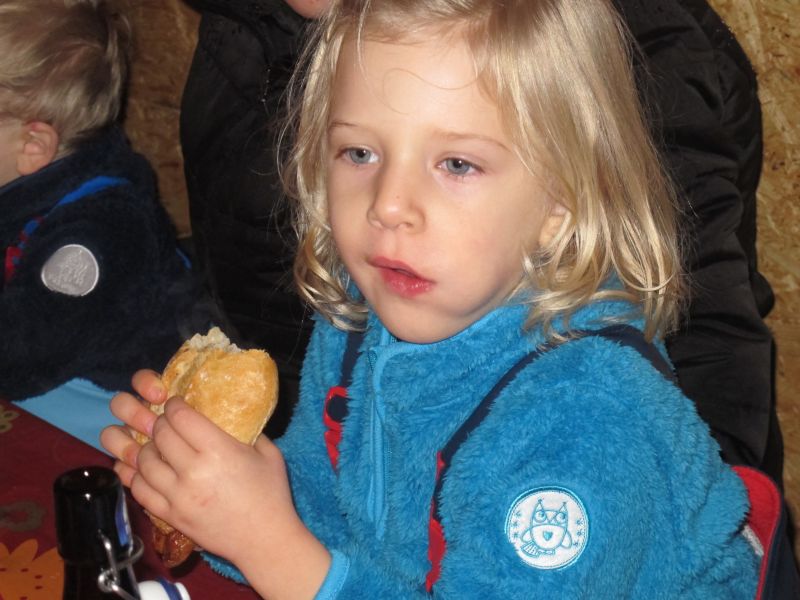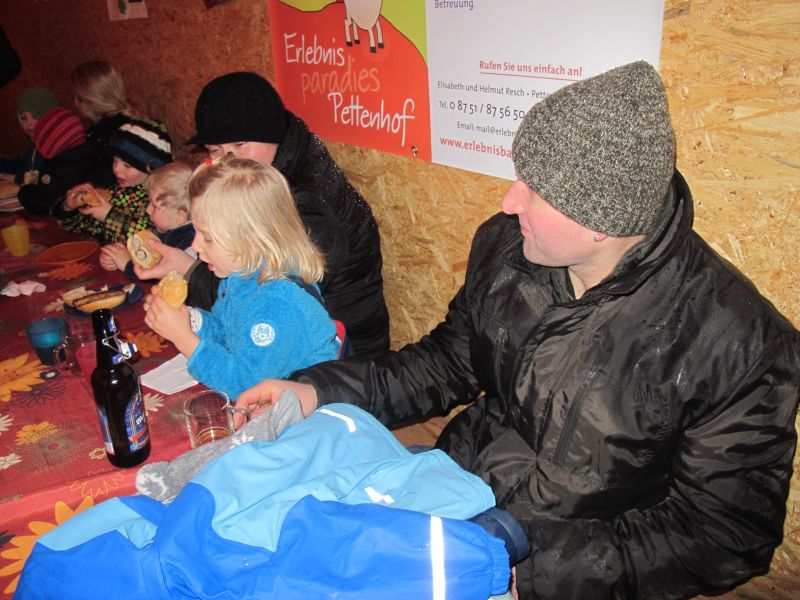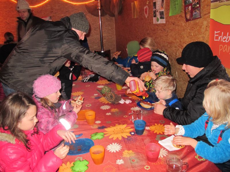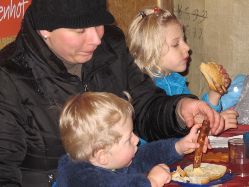 Sogar die Kleinsten langten kräftig zu, denn frische Luft macht hungrig. Danach durfte, wer Lust hatte, noch den Hühnern einen Besuch abstatten und mit Frau Resch Engel basteln.