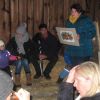 Als alle Gäste eingetroffen und der festlich geschmückte Stall ausgiebig bestaunt worden war, durften es sich alle auf Strohballen bequem machen. Frau Resch las die Geschichte von der „Waldmaus und Hausmaus“ und da wurde es mucksmäuschenstill. Ob Kinder oder Erwachsene, jeder lauschte aufmerksam, wie es der Waldmaus erging, als sie zu Besuch bei der Hausmaus war.