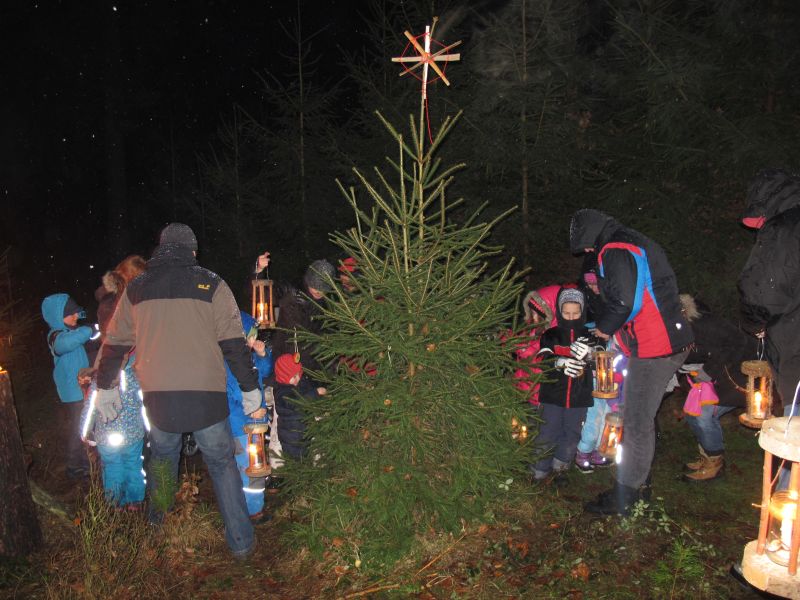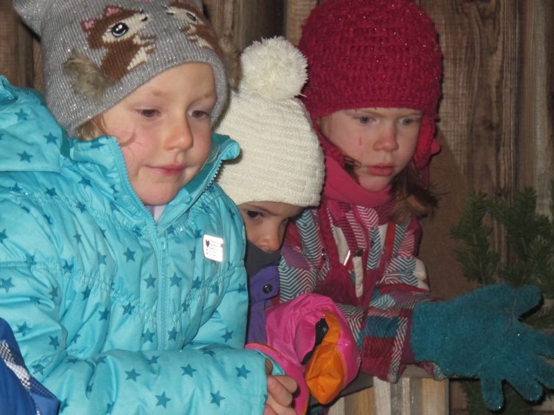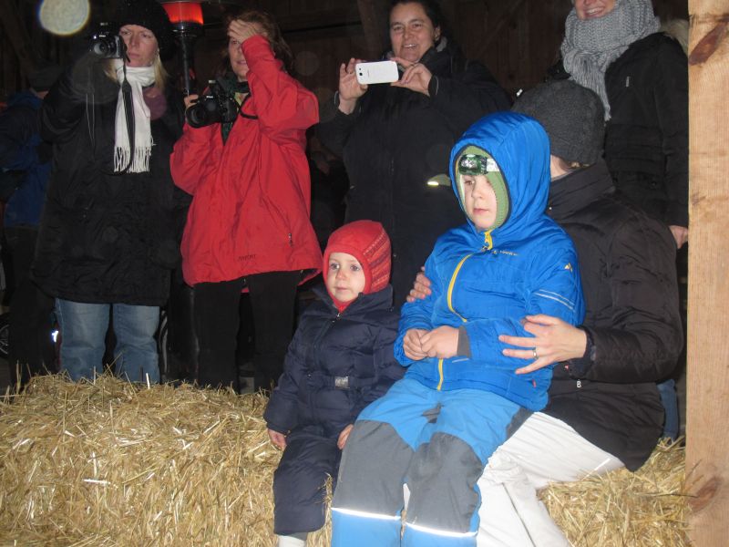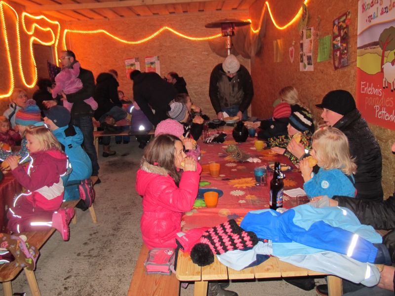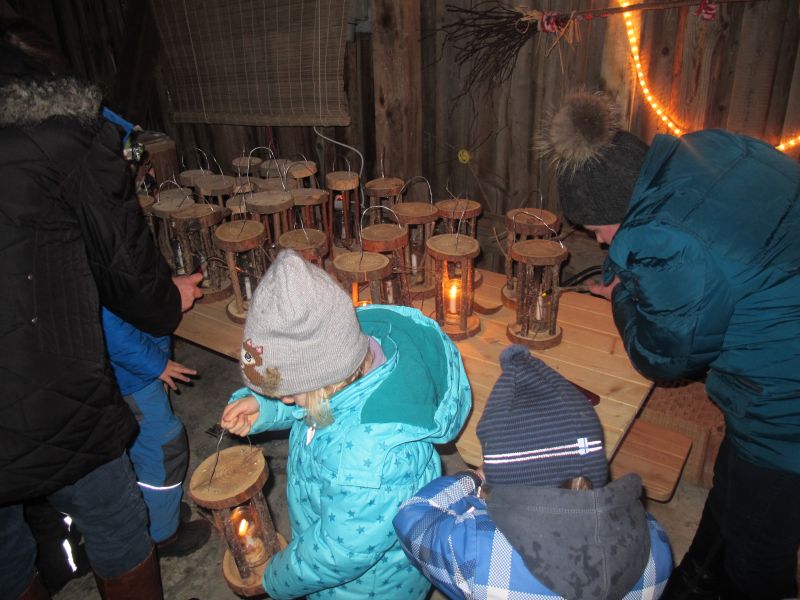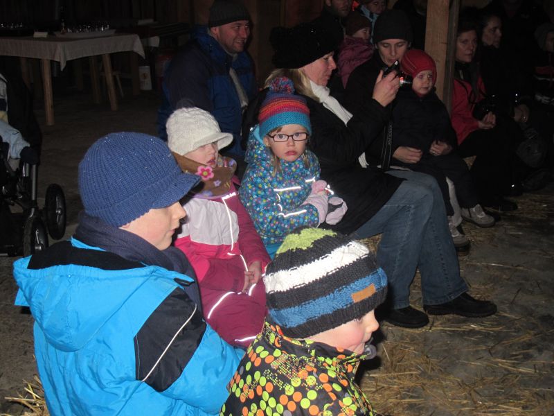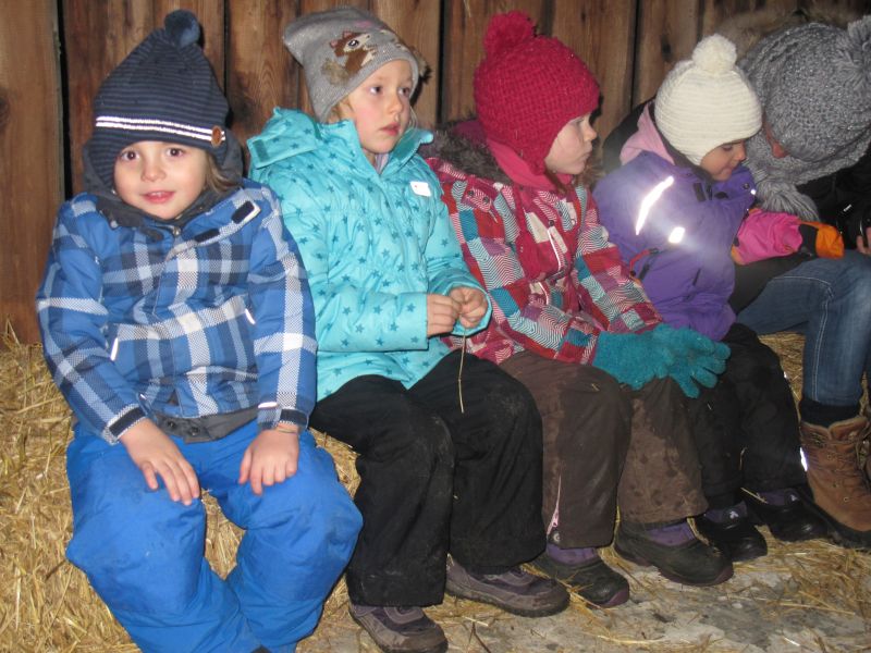 An die 25 Kinder von 0 – 9 Jahren waren mit ihren Eltern zu Besuch bei der Familie Resch, die wie immer alles sehr liebevoll für ihre Gäste vorbereitet hatte. Im romantischen Stall standen Laternen für die Wanderung in den nahen Wald bereit, eine Holzstadt konnte von den Kleinen bewundert werden und eine Eisenbahn zog ihre Kreise.