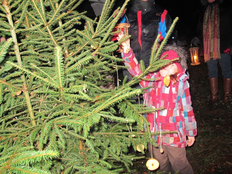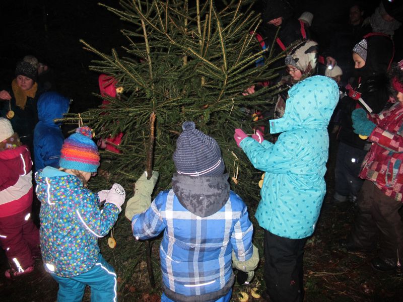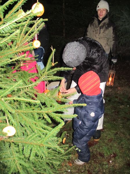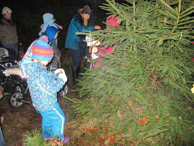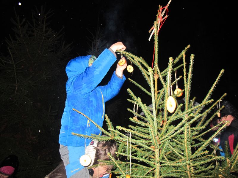 Es wurde aber nicht nur die Waldmaus beschenkt, auch die Hasen und Rehe sollten merken, dass es Weihnachten ist, deshalb wurde noch ein Christbaum mit Apfelringen und Erdnüssen geschmückt.
