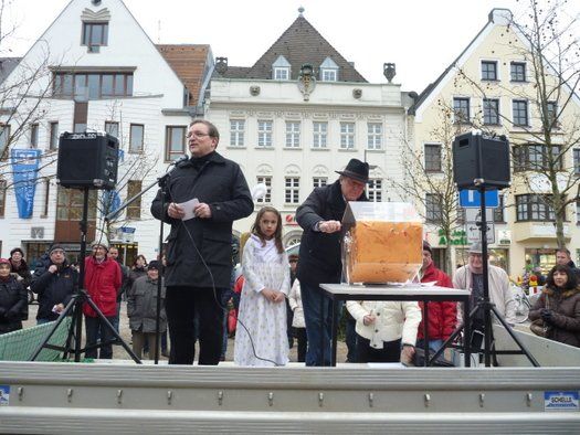Der Erlös der letztjährigen Tombola in Form des neuen bronzenen Stadtmodells erfreut auch an diesem Nachmittag die vielen Besucher des Hauptplatzes der nachhaltig lebenswertesten Stadt der Welt.