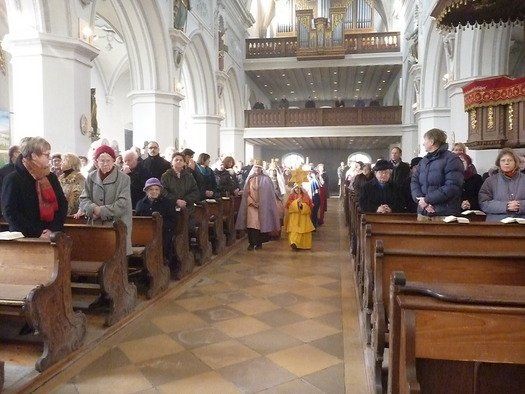 Mit Stadtpfarrer Frank Faulhaber wurde die große Einführungsmesse in St.Johannes Baptist im „vollen Ornat“ gefeiert. In seiner Predigt ging Faulhaber näher auf das Wort „Schalom“ ein. Der hebräische Begriff bedeutet zunächst Unversehrtheit, Heil, Frieden; es ist damit nicht nur Befreiung von jedem Unheil und Unglück gemeint, sondern auch Gesundheit, Wohlfahrt, Sicherheit und Ruhe.