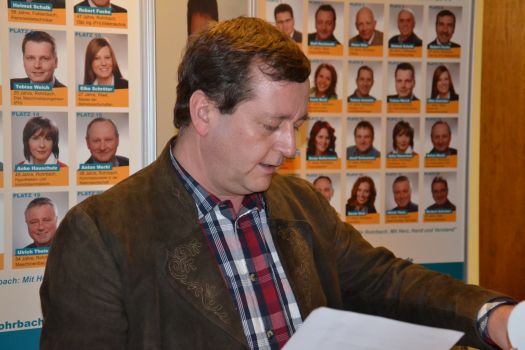 Vorsitzender Ralf Hochmuth hob hervor, dass die Jahreshaupt-versammlungen alle sechs Jahre wegen der Kommunalwahlen ein Highlight seien. Mit einem Augenzwinkern begrüßte er neben den Mitgliedern den kompletten Vorstand des Energie- und Solarvereins (alle FW), was später Bürgermeisterkandidat Michael Kornke zu der Bemerkung veranlasste, dass ein anderer Bürgermeisterkandidat sich dazu hinreißen ließ, dass man den Energie- und Solarverein nicht allein den Freien Wählern überlassen dürfe – dabei sind über 30% des Vereins eben nicht Mitglieder der FW. Hochmuth ging in seiner Begrüßung auch darauf ein, dass die anderen Parteien den Eindruck vermitteln, dass noch kein Wahlkampf nötig sei. „Wir lassen uns keine Zeit, wir geben Vollgas und sind die treibende Kraft in Rohrbach“. Denn nur die FW veranstalte mehrmals jährlich Bürgerforen, eben nicht nur zur Wahl. Nur die FW mache einen Fotowettbewerb, veranstalte Fahrradturniere oder Kabarettabende mit den „Stachelbären“. CSU, SPD oder FDP sieht man selten, so sein Vorwurf. „Andere Parteien ruhen sich aus, aber wir geben Gas“, so Hochmuth.
