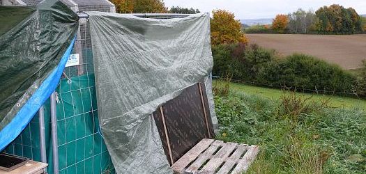 Vor drei Jahren zogen die ersten Tiere in die Tierherberge an der Weiberrast und seither umgibt ein klappriger, provisorischer Bauzaun mit Planen das Gelände. Derzeit wird endlich ein neuer Zaun gebaut, dessen Kosten allerdings im fünfstelligen Bereich liegen, einem sehr hohen Betrag für den Verein.