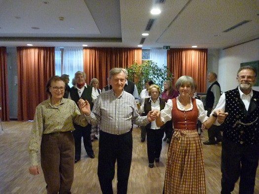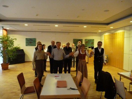 Volkstanz fördert nicht nur die Beweglichkeit der Glieder, unterstützt den Gleichgewichtssinn und fördert die Kondition, sondern es macht obendrein noch mächtig Spaß. Max und Rosi Heckmeier hatten eingeladen, und gut fünfzehn Paare hatten sich im Hofbergsaal eingefunden.