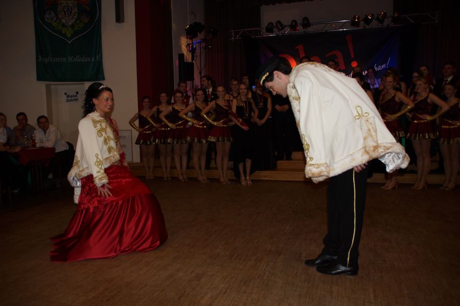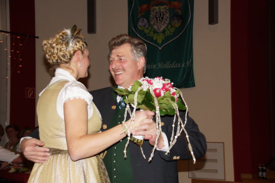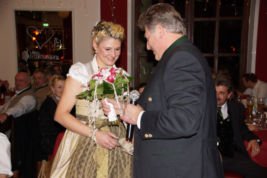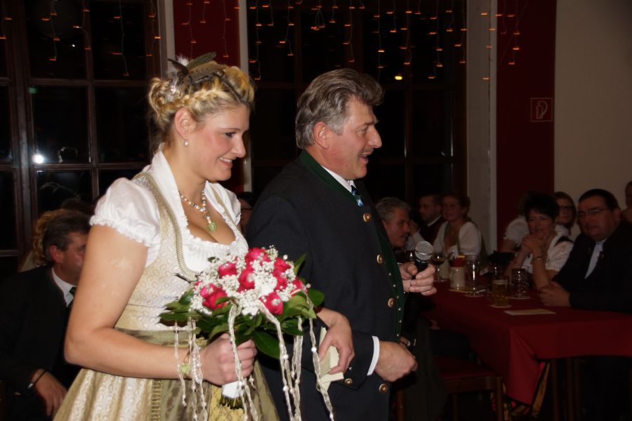 Herr Steiger hatte wie jedes Jahr die freudige Aufgabe, eine Ballkönigin auszuwählen, mit der er den Tanz eröffnete. Diese war schnell gefunden, Georgine Amler aus Aiglsbach war die Dame seiner Wahl.