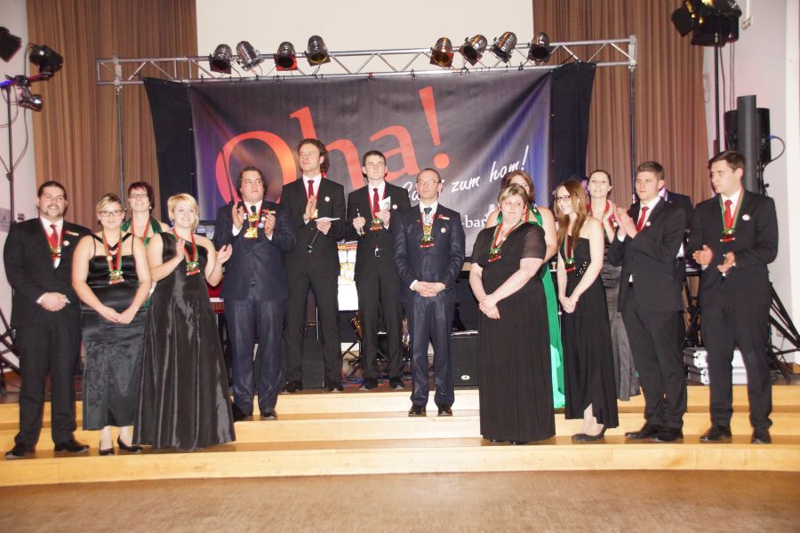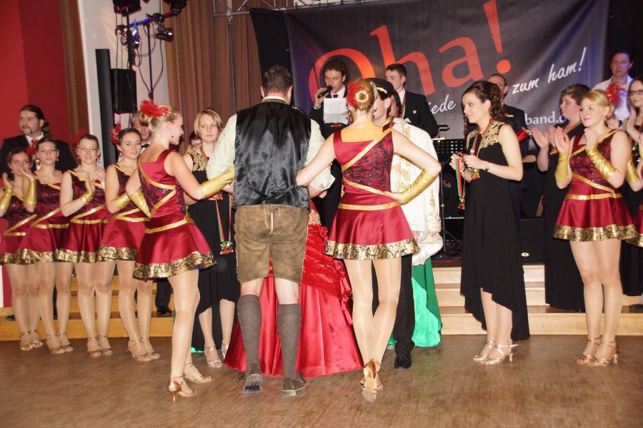 Natürlich durften die zahlreichen Gäste nicht nur beim Tanzen zuschauen, sondern beteiligten sich schon nach den ersten Takten. Einer der Höhepunkte des Abends war der Auftritt der Narrhalla mit ihrem Standardprogramm und die Verleihung der Faschingsorden.
