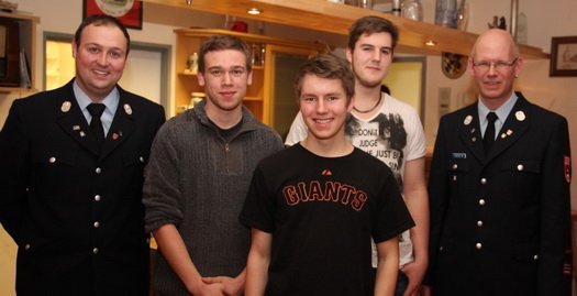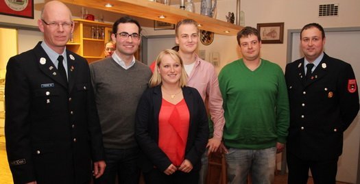 Ferdinand Schmidpeter wurde zum Oberfeuerwehrmann befördert, Julia Mirlach Benedikt Schmid und Marco Jäger zum Hauptfeuerwehrmann.