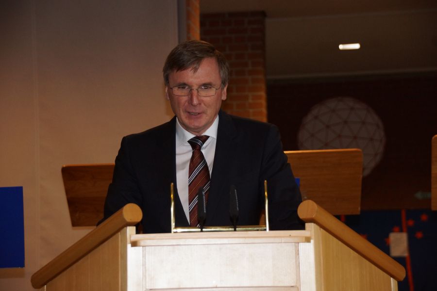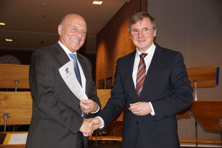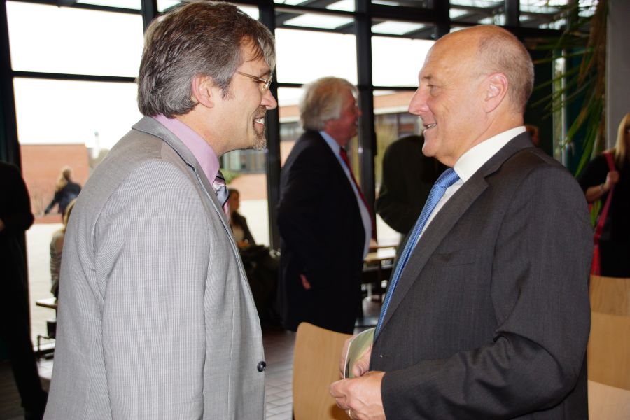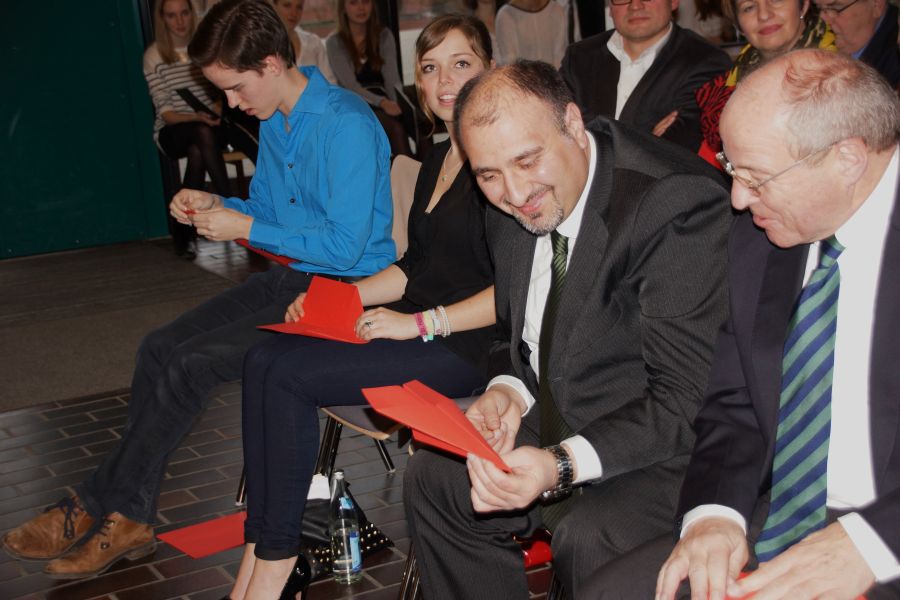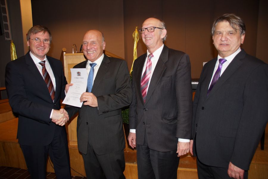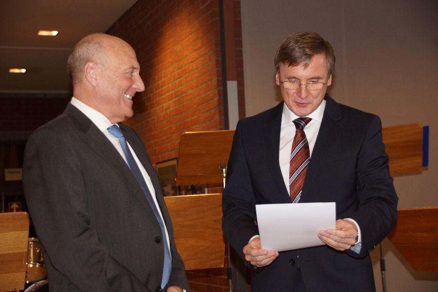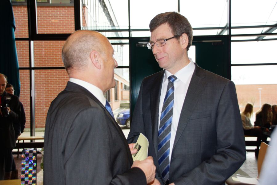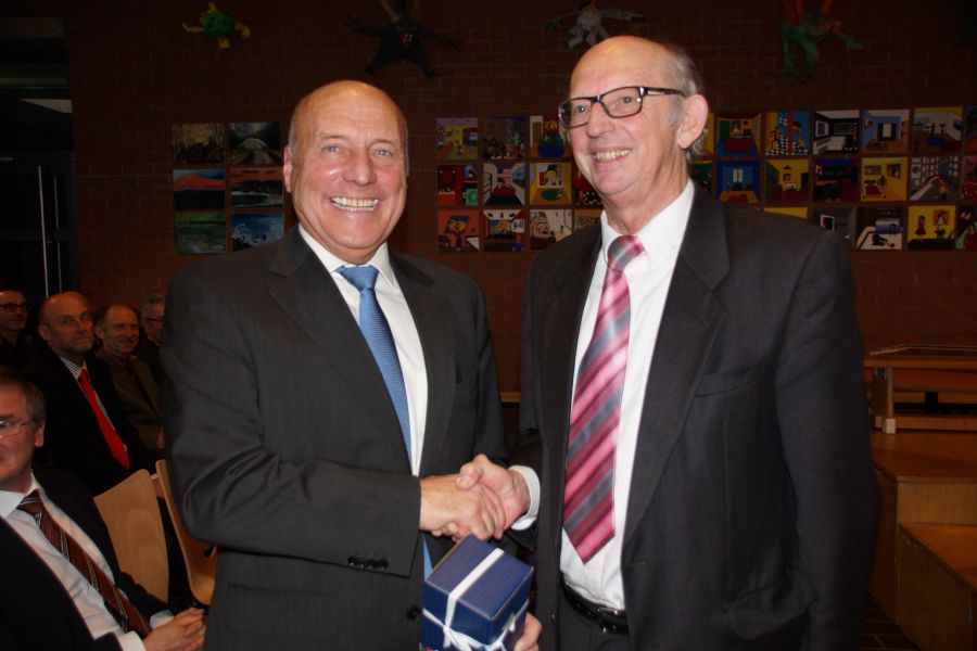 Aber nicht nur die zahlreichen Sanierungsmaßnahmen, Um- und Anbauten erschwerten das Schulleben massiv, auch die Einführung des G 8 sorgte für große Unruhe bei Eltern, Schülern und auch Lehrern. Doch er als Schulleiter führte die Schule kraftvoll und unermüdlich durch diese unruhigen Zeiten. Herr Räde lobte diese Riesenleistung, die er vollbracht hat und meinte, dass alle hier den Hut dafür ziehen müssten.