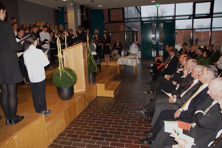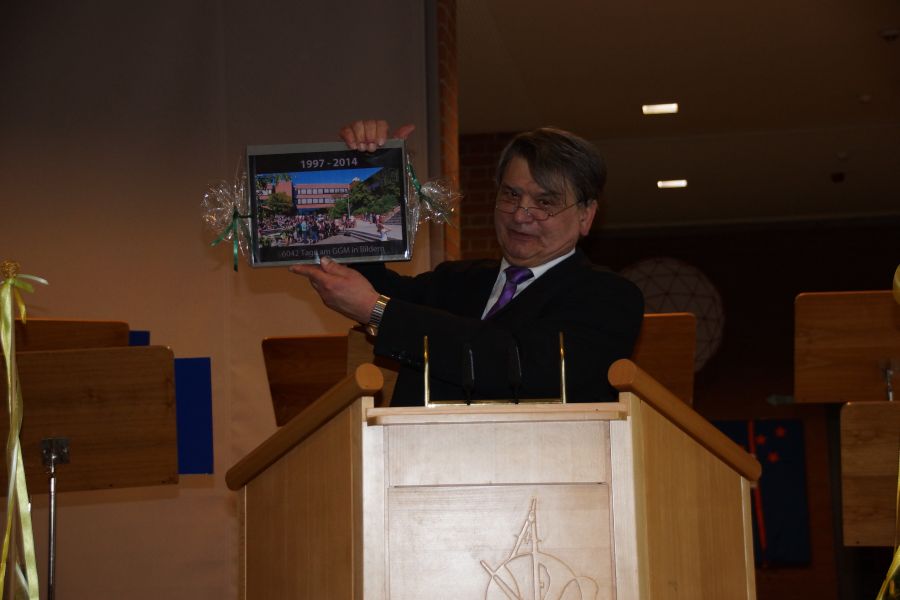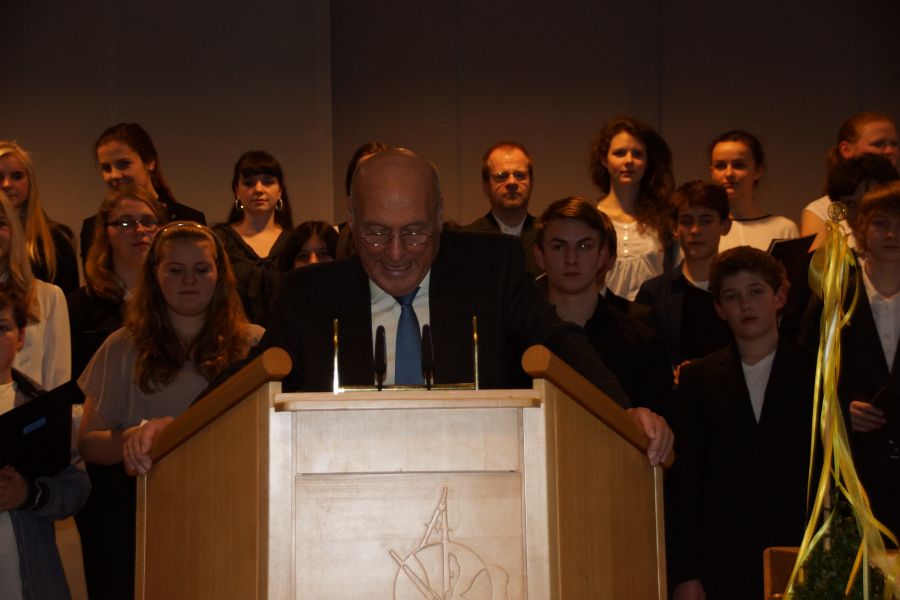 Seine besten Wünsche galten den Schülerinnen und Schülern für einen erfolgreichen Abschluss ihrer Schullaufbahn, und dem GGM wünschte er auch weiterhin viel Erfolg in seiner Erziehungsarbeit. Der Schulchor, der am Ende der offiziellen Verabschiedung „Time to leave“ sang, rührte ihn fast zu Tränen, aber auch vielen Anwesenden war dieselbe Emotion ins Gesicht geschrieben. Schließlich wollte Herr Ludwig noch auf seinen Abschied anstoßen und lud alle Anwesenden zu einem gemeinsamen Umtrunk und einem kleinen Imbiss in die Mensa ein.