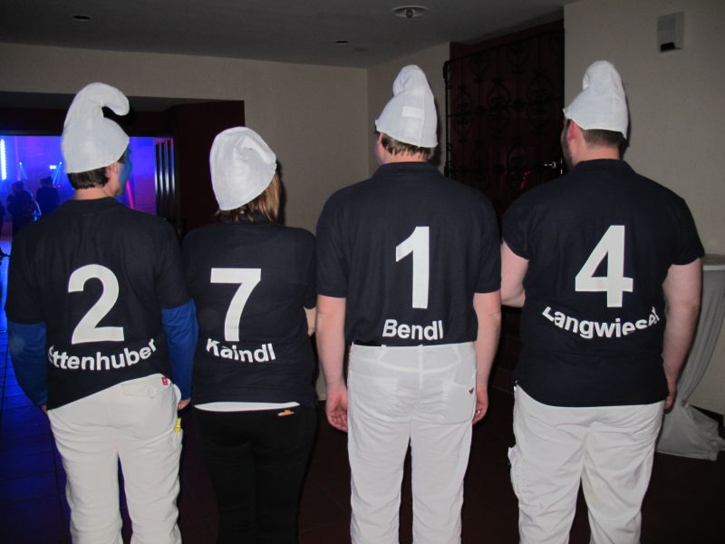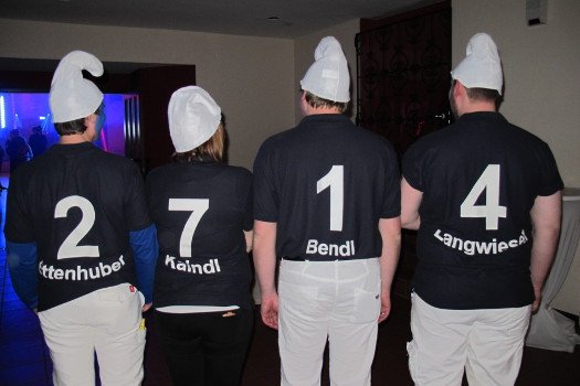 Witzig waren die T-Shirts der Mitglieder, bei denen man als erstes an Fußball dachte, vorne die „Mannschaft“, hinten Name und „Startnummer“ und alle mit einer Schlumpfmütze auf dem Kopf. Diese Aufmachung war sicher kein Zufall, denn sie sprachen damit genau ihre Zielgruppe an.