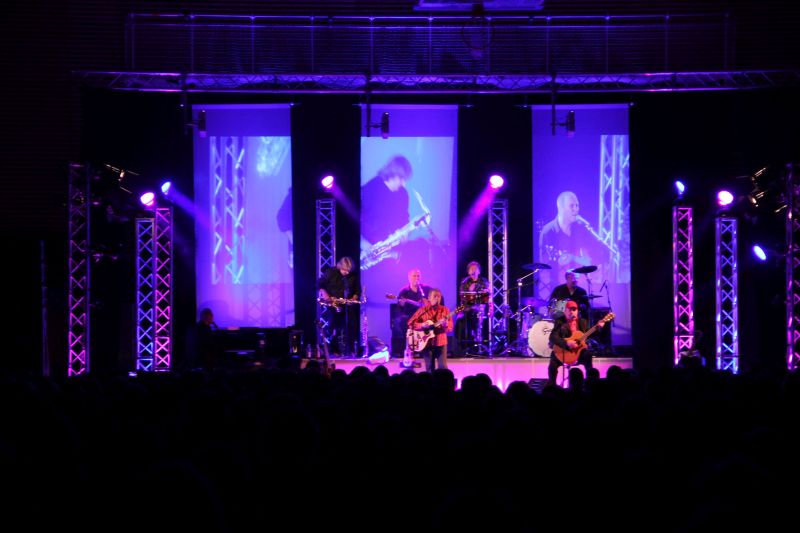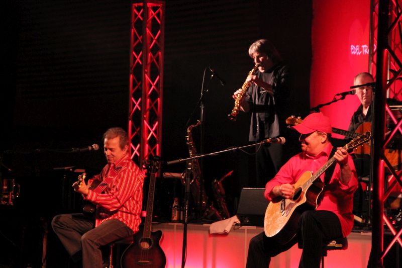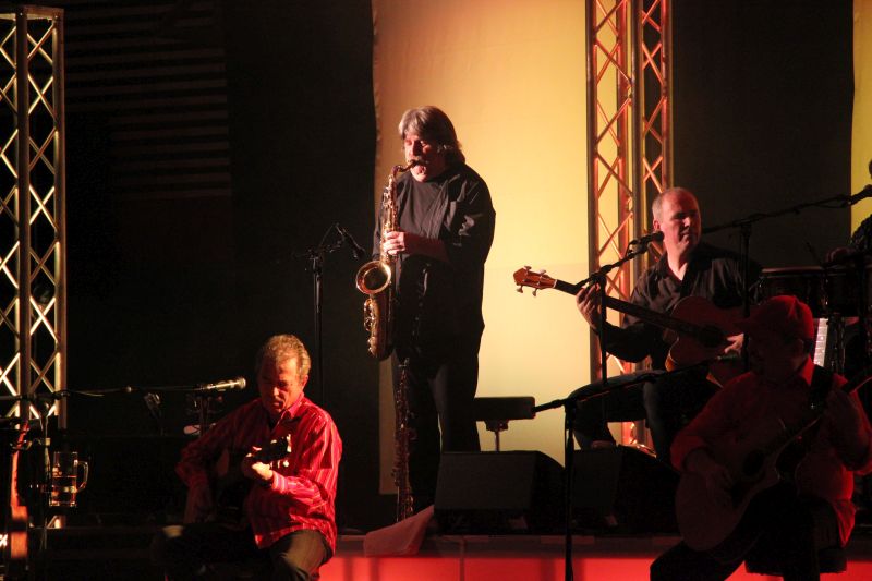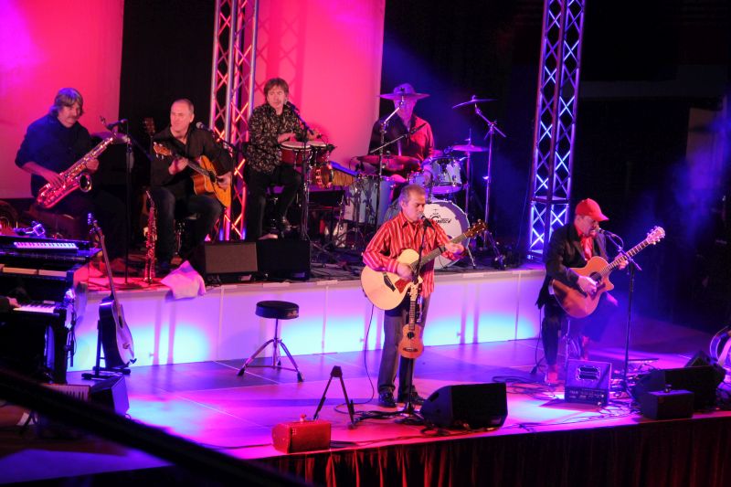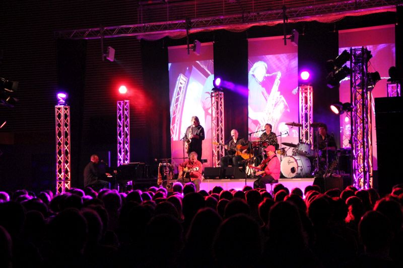 Auch wenn diese beiden Urgesteine ganz vorne auf der Bühne und damit im Mittelpunkt des Auftritts stehen, die Musiker um sie herum sind durchwegs allerfeinste Sahne. Ludwig Seuss, der Boogie Woogie- und Cajun-Antreiber am Piano und an den Keyboards; Otto Staniloi, die "komplette Horn-Section" der Band, vom Saxophon über die Piccolo-Flöte bis zum Alphorn; Willie Duncan an der Rhythmusgitarre sowie die beiden, die an Schlagzeug und Percussion für den Beat sorgen, Paul Dax und Dieter Radig.