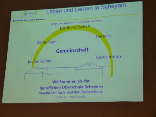 Beim Vortrag in der Mittelschule Pfaffenhofen purzelten die einzelnen Bildstrecken nur so über die große Leinwand, manch einer schrieb anfangs noch mit, gab aber nach Behandlung der FOS endgültig auf. Vorschule, vorbereitende Studienseminare, Berufsschule, Vorleseunterricht, Kunst, Theater oder gar im Prielhof wohnen und lernen, das Angebot ist riesig, als Elternteil könnte man fast neidisch werden.
