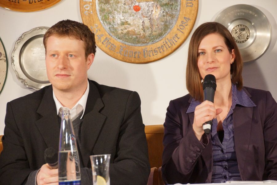 Christiane Gröber von ISAR TV und Michael Bragulla moderierten das „Duell der Giganten“, das von dem Sender aufzeichnetet wurde. Um die Stimmung etwas zu heben und den Hauptpersonen die sichtliche Nervosität zu nehmen, stellte Frau Gröber die Frage, wie die Vier zum Thema Fasching stehen. Von hellauf begeistert bis Null Interesse, war jede Antwort dabei, was aber sicherlich auf die anstehende Wahl keinen Einfluss hat.