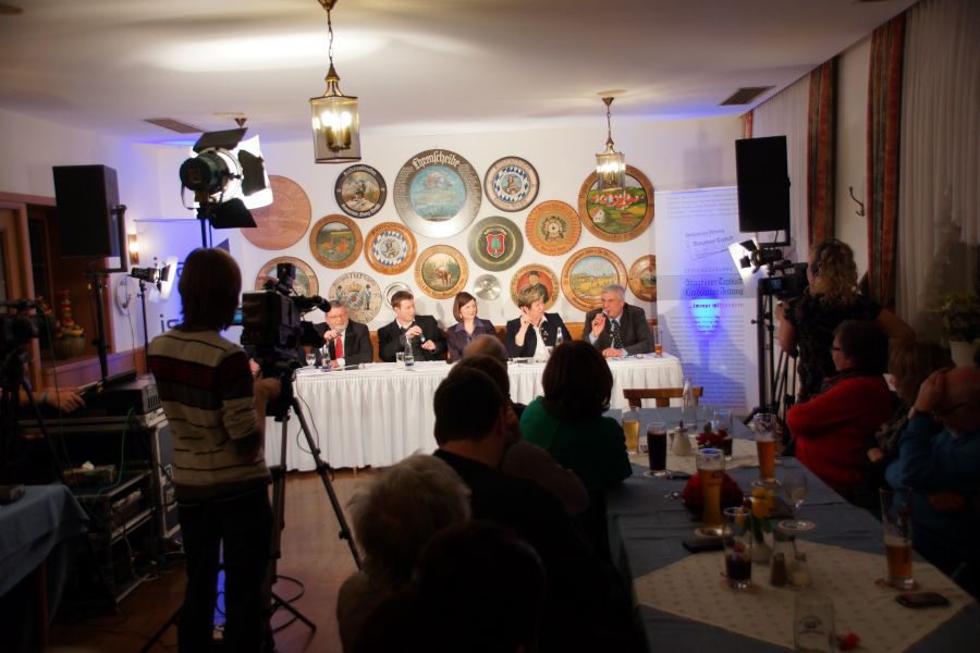 Im Seidlbräu standen alle vier Mainburger Bürgermeisterkandidaten ihren Wählern Rede und Antwort. Wie nicht anders zu erwarten, war der Saal bis auf den letzten Platz gefüllt, denn nicht nur die örtliche Presse war vor Ort , sondern sogar das Fernsehen interessierte sich dafür.