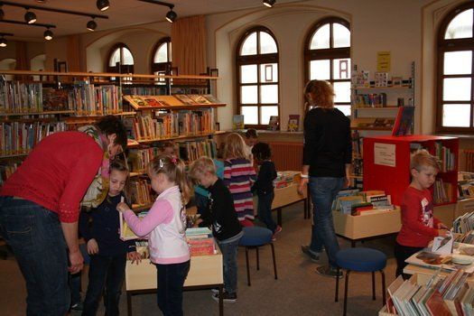 Doch auch bei der Kinderliteratur ist der Anstieg der Ausleihzahlen beachtlich. Erfreulich ist, dass der Ausbau des Konzeptes „Leseförderung“ und die gute Zusammenarbeit mit den Kindergärten und Schulen Früchte trägt. Zum Kennen Lernen der Stadtbücherei im Haus der Begegnung können die Kindergärten unter einigen altersgerechten Angeboten wählen: In der Schnupperstunde wird den Kindern die Bücherei erklärt und anschließend eine Geschichte vorgelesen. Die Vorschulkinder angemeldeter Kindergärten bekommen nach drei kindgerechten Führungen durch die Kinderabteilung ihren persönlichen „Büchereiführerschein“ überreicht. Dank der Vorlesepaten konnten das gesamte Jahr über Kinder ab fünf Jahren zum „Vorlesen“ eingeladen werden.