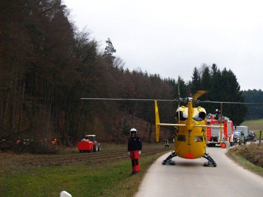 Zwei Waldarbeiter wollten am Donnerstagvormittag eine Buche in einem Waldgebiet bei Giglhof fällen. Dabei wurde der 28-jährige von der fallenden Buche am Bein getroffen und schwer verletzt. Sein Kollege konnte sofort den Notruf absetzen und den Verletzten unter dem Baum befreien. Der Mann musste mit dem Rettungshubschrauber in eine Spezialklinik nach Murnau geflogen werden.