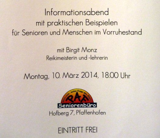 Reiki im Seniorenbüro Pfaffenhofen