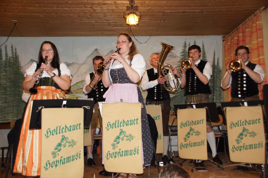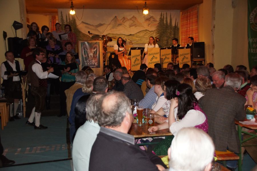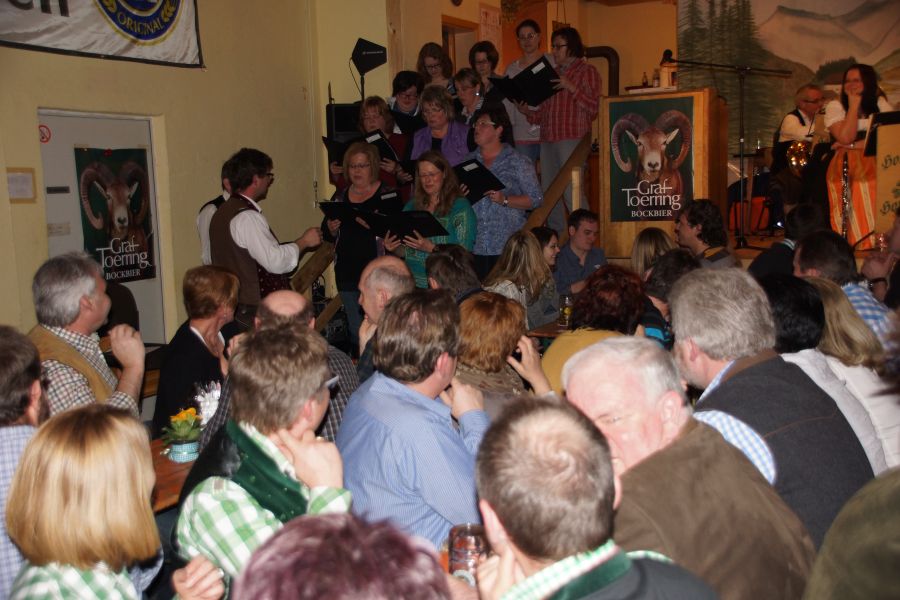 Bereits zum 25. Mal feierten die Steinbacher ihr Starkbierfest in der Dorfhalle, aber zum ersten mal wurde es nicht von den Stammtischfreunden und der SLU organisiert, sondern vom Steinbacher Kulturverein. Zur Einstimmung sang der Steinbacher Chor ein paar Gstanzl , begleitet von der „Holledauer Hopfamusi.“