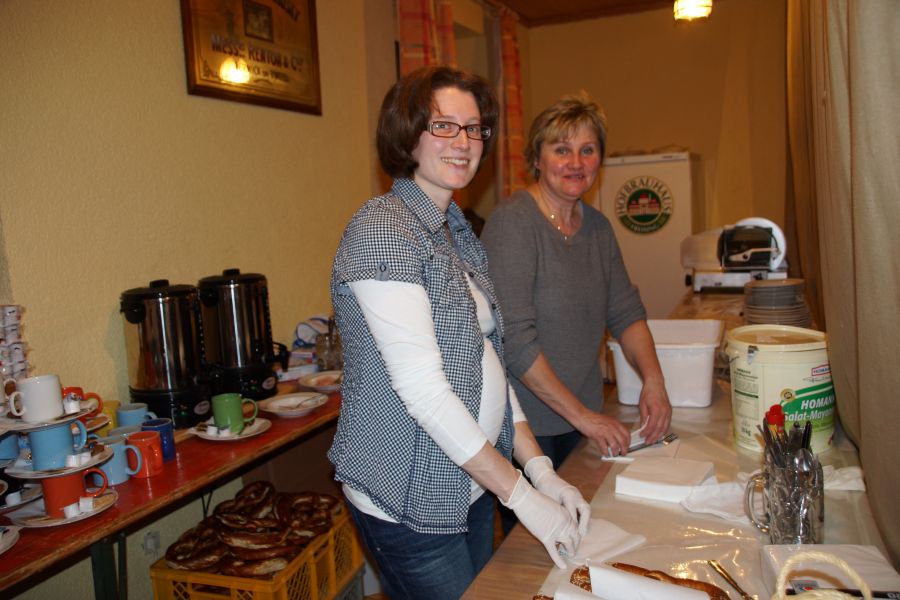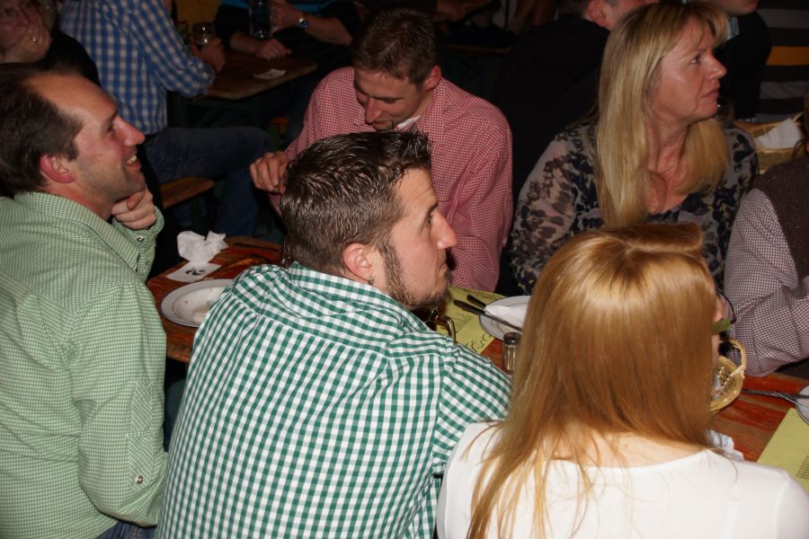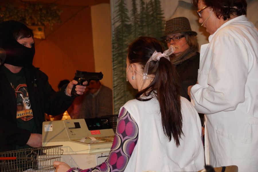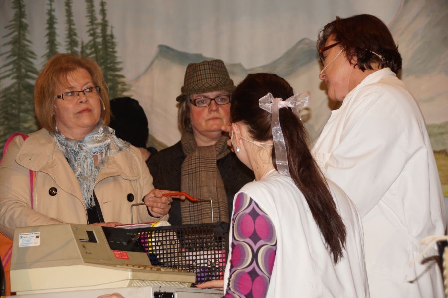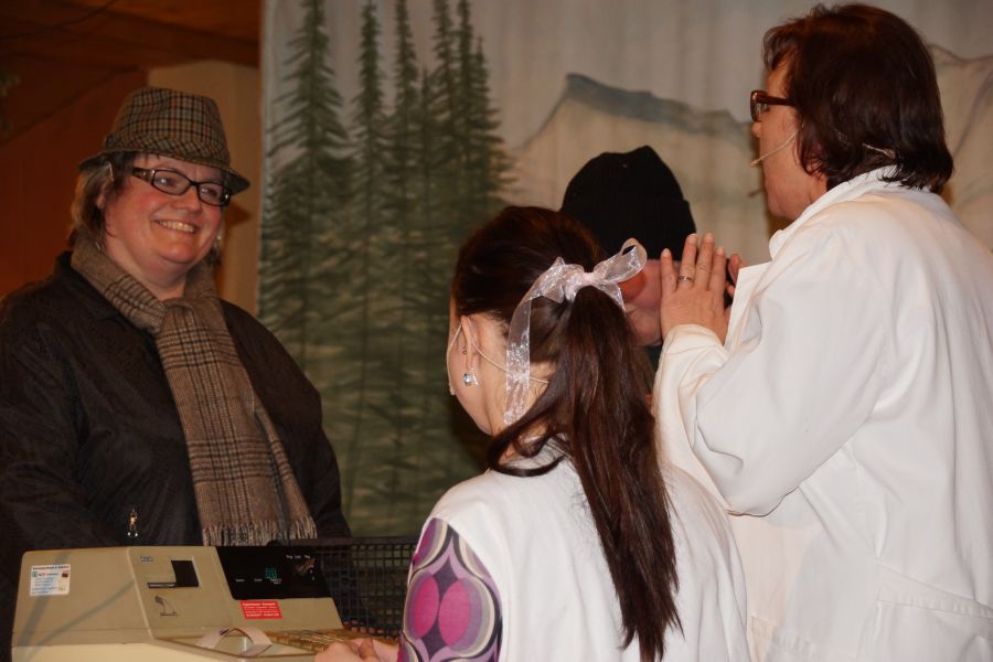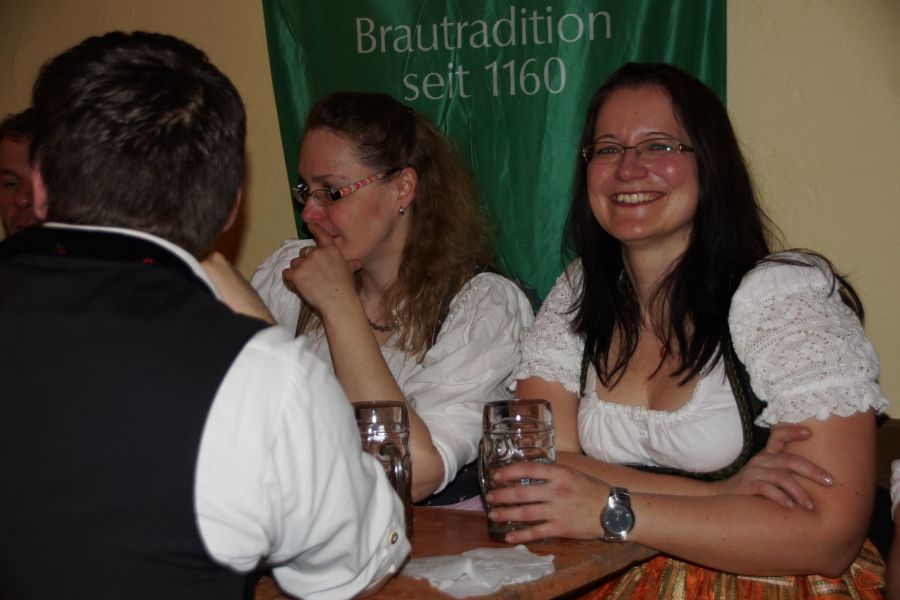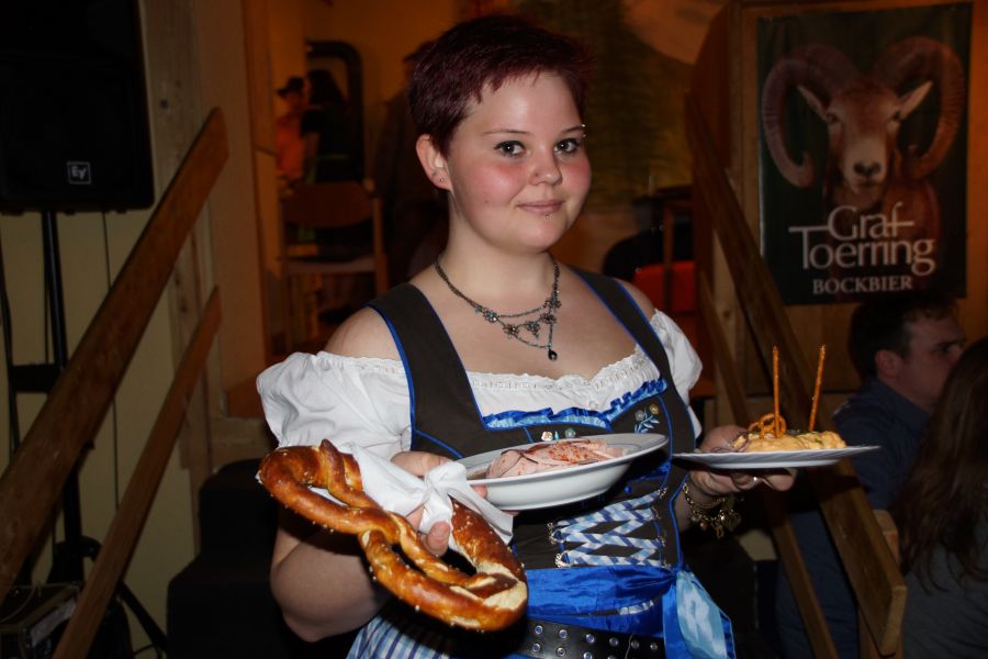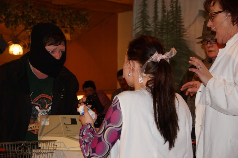Nach einer kurzen Pause, bei der die Bedienungen kaum mit den Bestellungen von deftigen Wurstsalat, Käse- und Brotzeittellern und dem süffigen Graf Toerringer Starkbier mitkamen, führte der Frauenbund einen Sketch auf. Dieser hatte seine Premiere schon bei der 30-Jahr-Feier des Frauenbundes. Die witzige Inszenierung eines „Einkaufes“, die fast wie aus dem richtigen Leben gegriffen war, kam aber auch diesmal wieder sehr gut an.