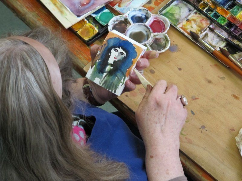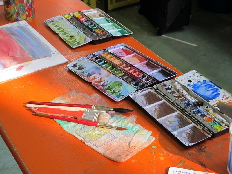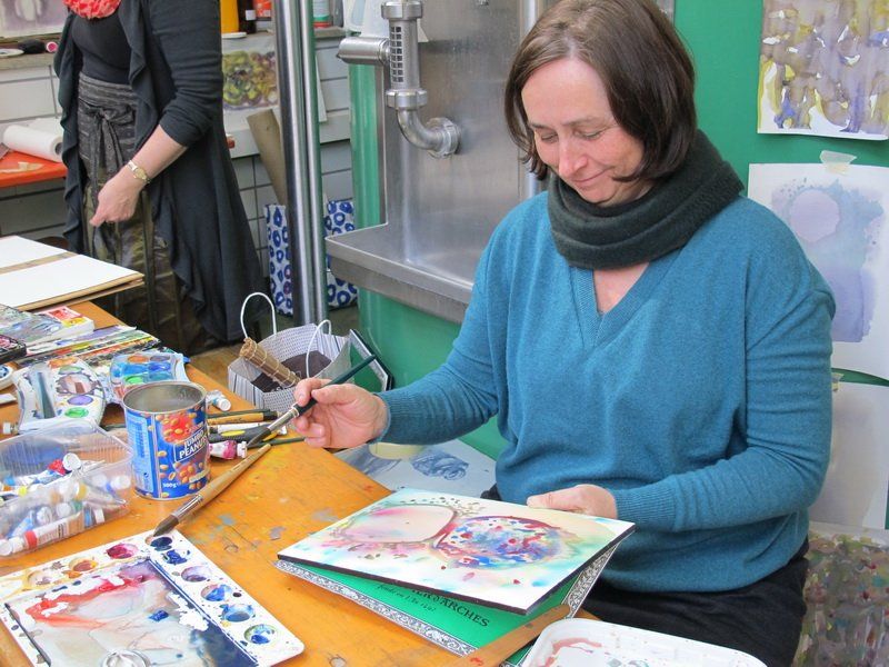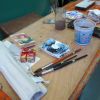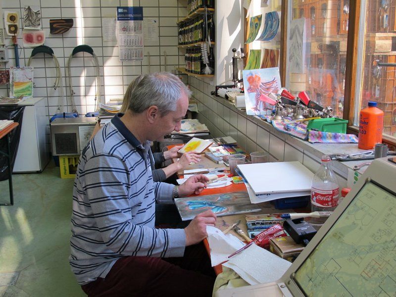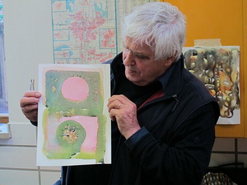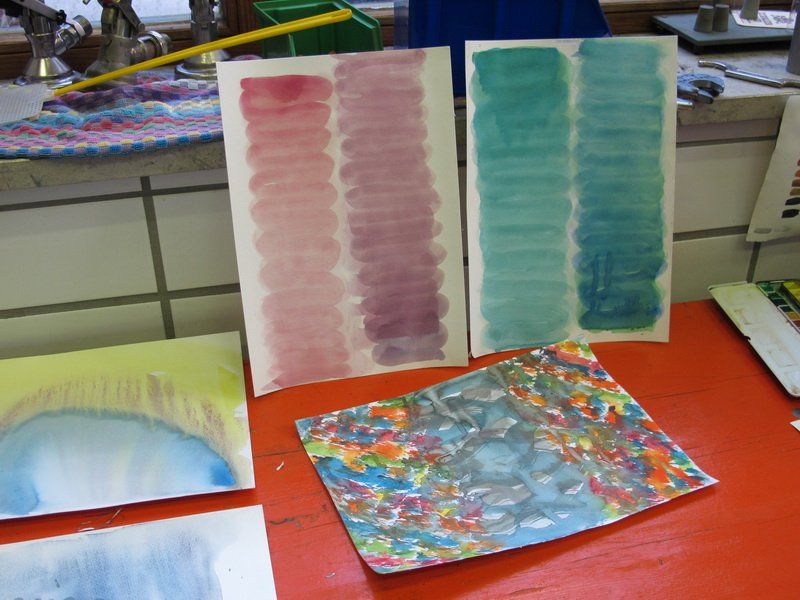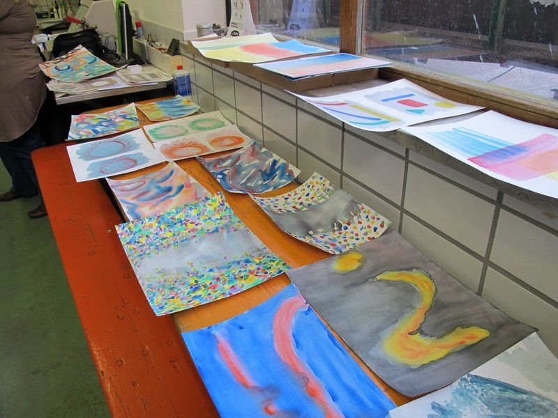 In der Schlussbesprechung geht Prof. Klein auf jedes der Gemälde ein. Alle lernen noch einmal mit, würden gerne weiter malen mit all der Anerkennung und dem Verständnis durch den besten Aquarell-Didakten Deutschlands. Das ist auch der Grund, warum viele wieder kommen oder ehemalige Student(inn)en, die inzwischen erfahrene Kunstpädagoge(inn)en geworden sind.
