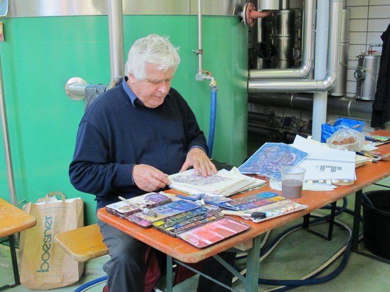 Wieder gab das Sudhaus des Ziegler-Bräus, der Mainburger Craft-Brauerei, das Ambiente für die Hallertauer Winterakademie von Prof. Fridhelm Klein. Ein Dutzend „Studenten“ vervollkommneten ihr Aquarell-Malen. Zwei Tage wurde das Thema „hell und dunkel“ von vielen Aspekten angegangen. Zahlreiche Werke entstanden.