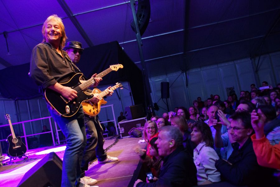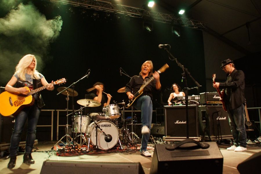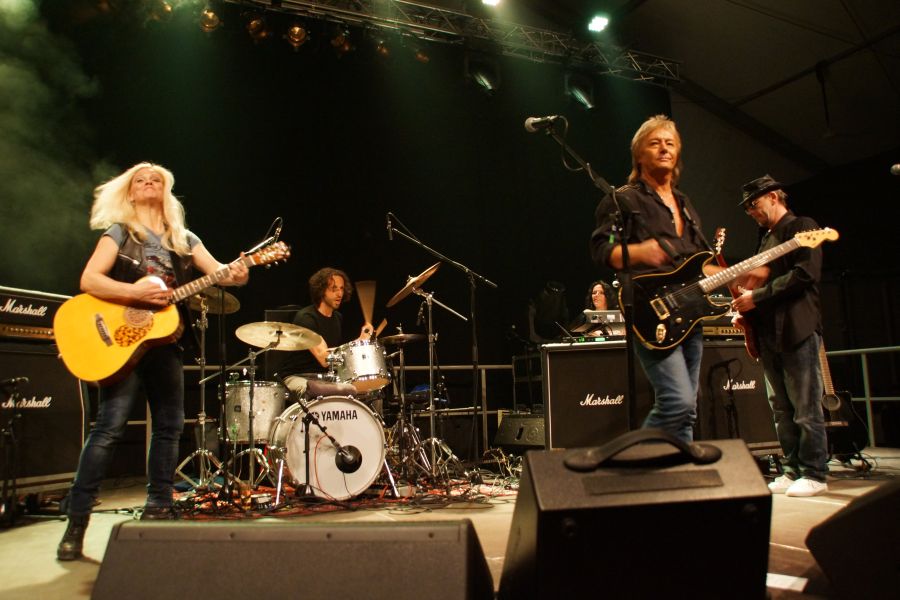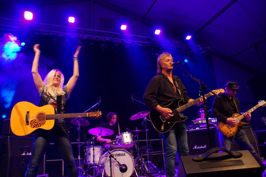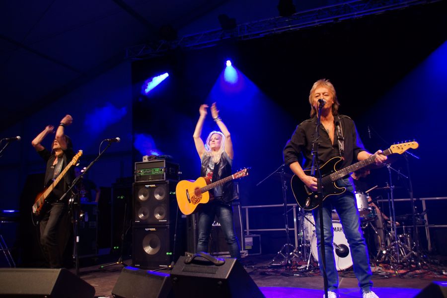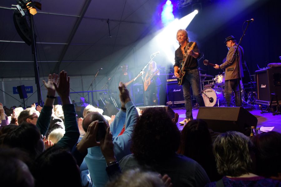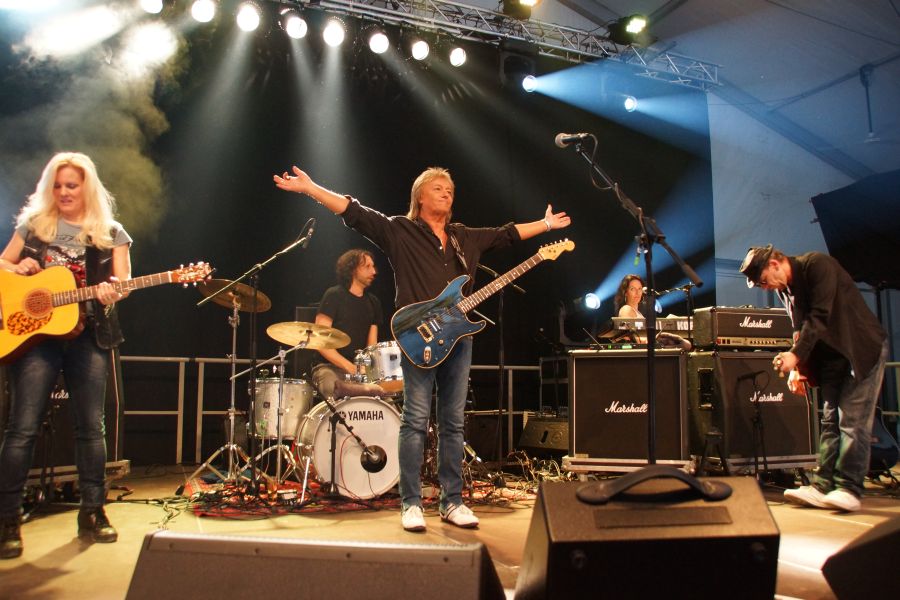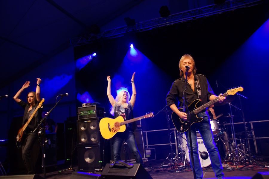 Am Keyboard saß die Mönchengladbacherin Martina Walbeck, an den Drums der in München geborene Dorino Goldbrunner und den Bass spielte der ebenfalls aus München stammende Axel Kowollik. Die Stimmung im Festzelt war ausgezeichnet, das Blitzlichtgewitter nahm kein Ende und von allen Seiten wurde mit Handys mitgefilmt.