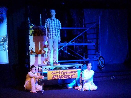 „Auf der Greifswalder Straße“ von Roland Schimmelpfennig - Menschen, die aneinander vorbeileben. Menschen, die im Dasein feststecken. Menschen, deren Schicksale sich flüchtig berühren oder eng miteinander verwoben sind. 24 Stunden leben - die Theatergruppe des Schyren-Gymnasiums hat sich keine leichte Kost für ihr diesjähriges Stück ausgesucht.